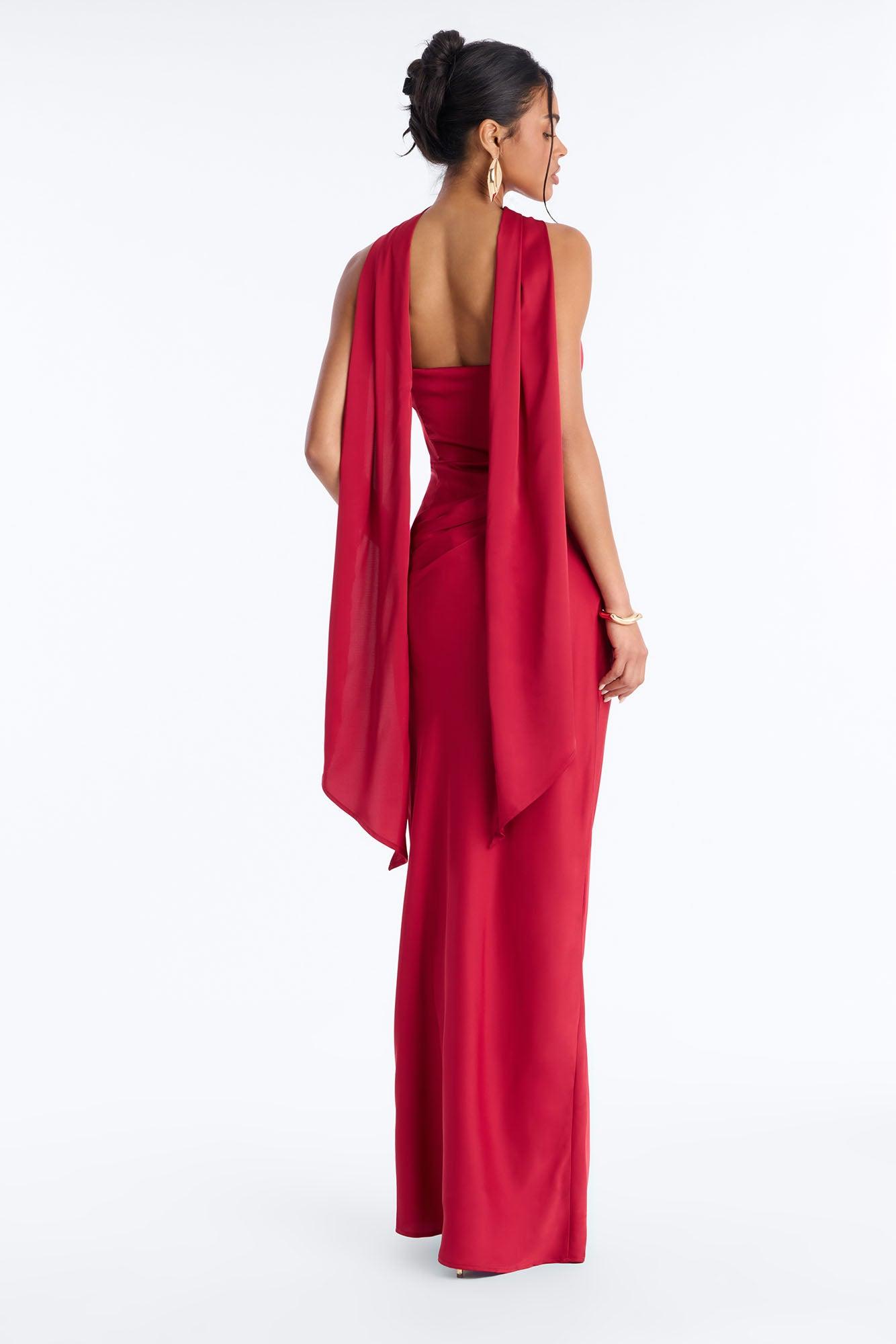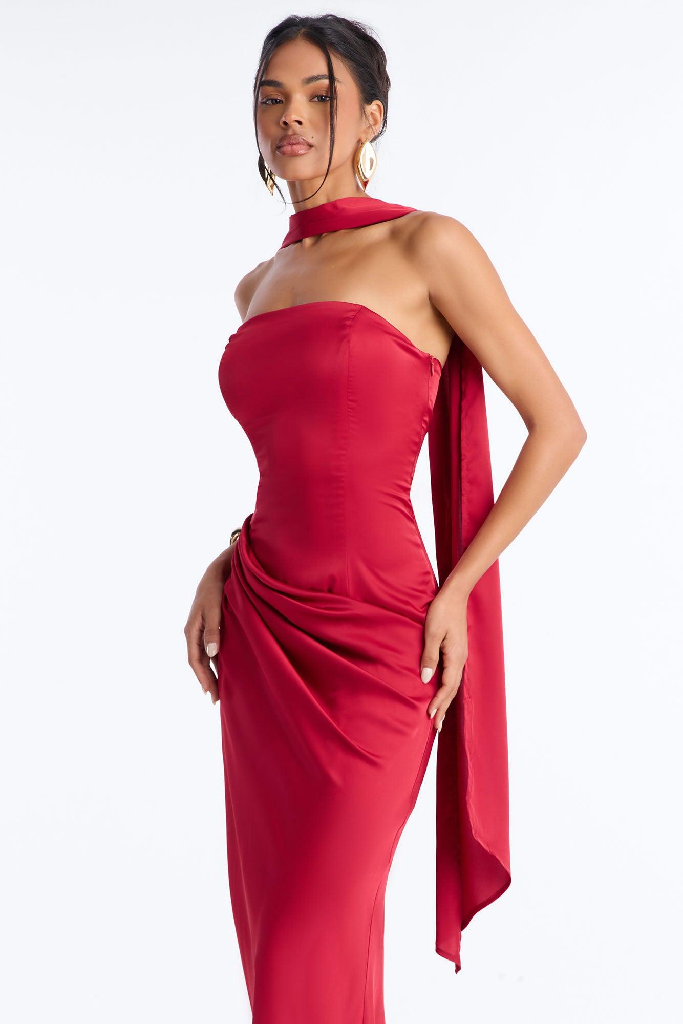 Lovestruck Look Satin Corset Maxi And Scarf Dress - Wine Female