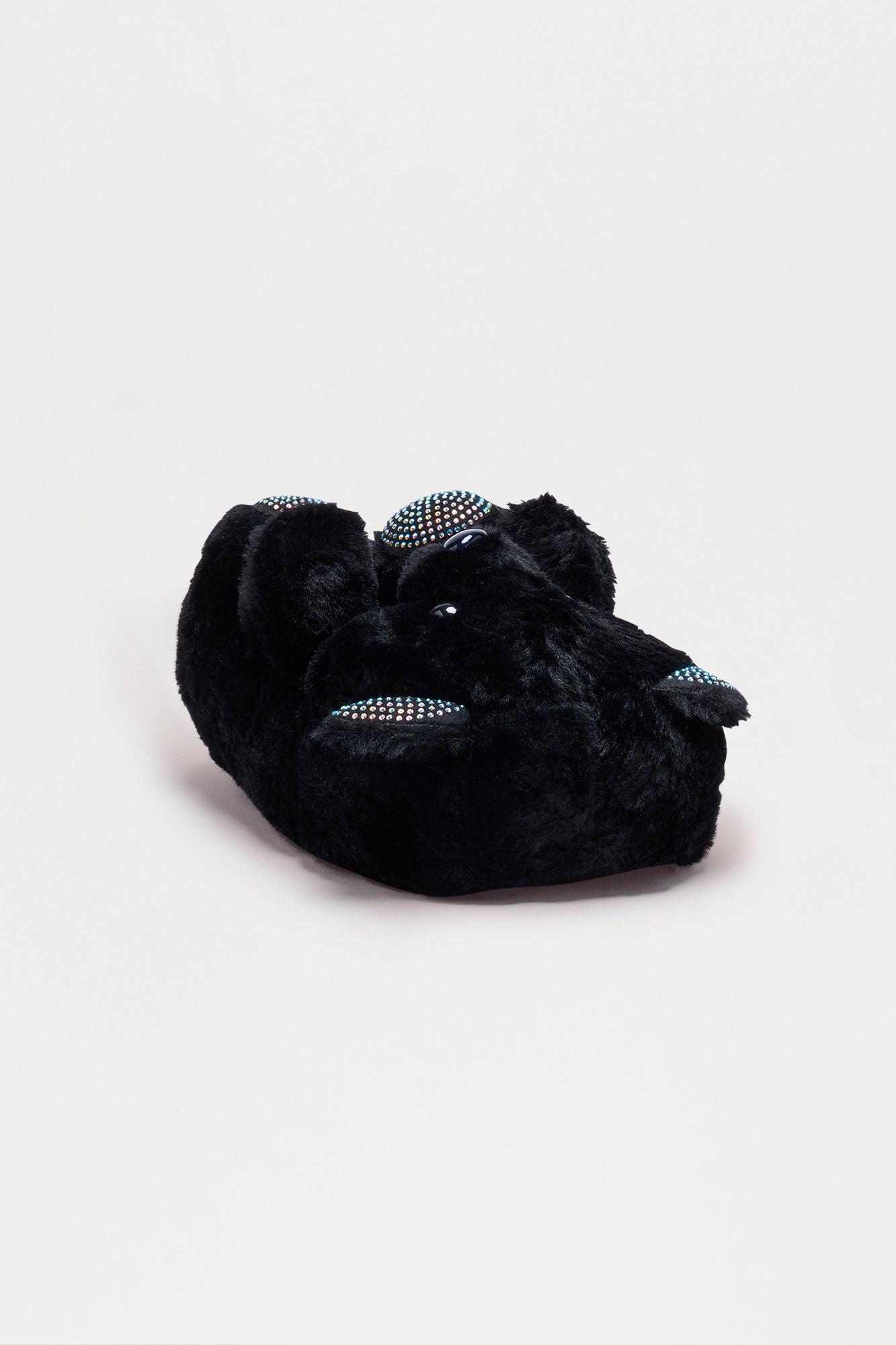 Available In Black, Brown, Fuchsia And White. Closed Toe Slippers Faux Fur Rhinestone Embellishment Disclaimer: Rhinestone Placement Will Vary. 3D Bear Applique Flat Heel Novelty Bear Toe Imported California Proposition 65WARNING: Cancer and Reproductive Harm - www.P65Warnings.ca.gov.