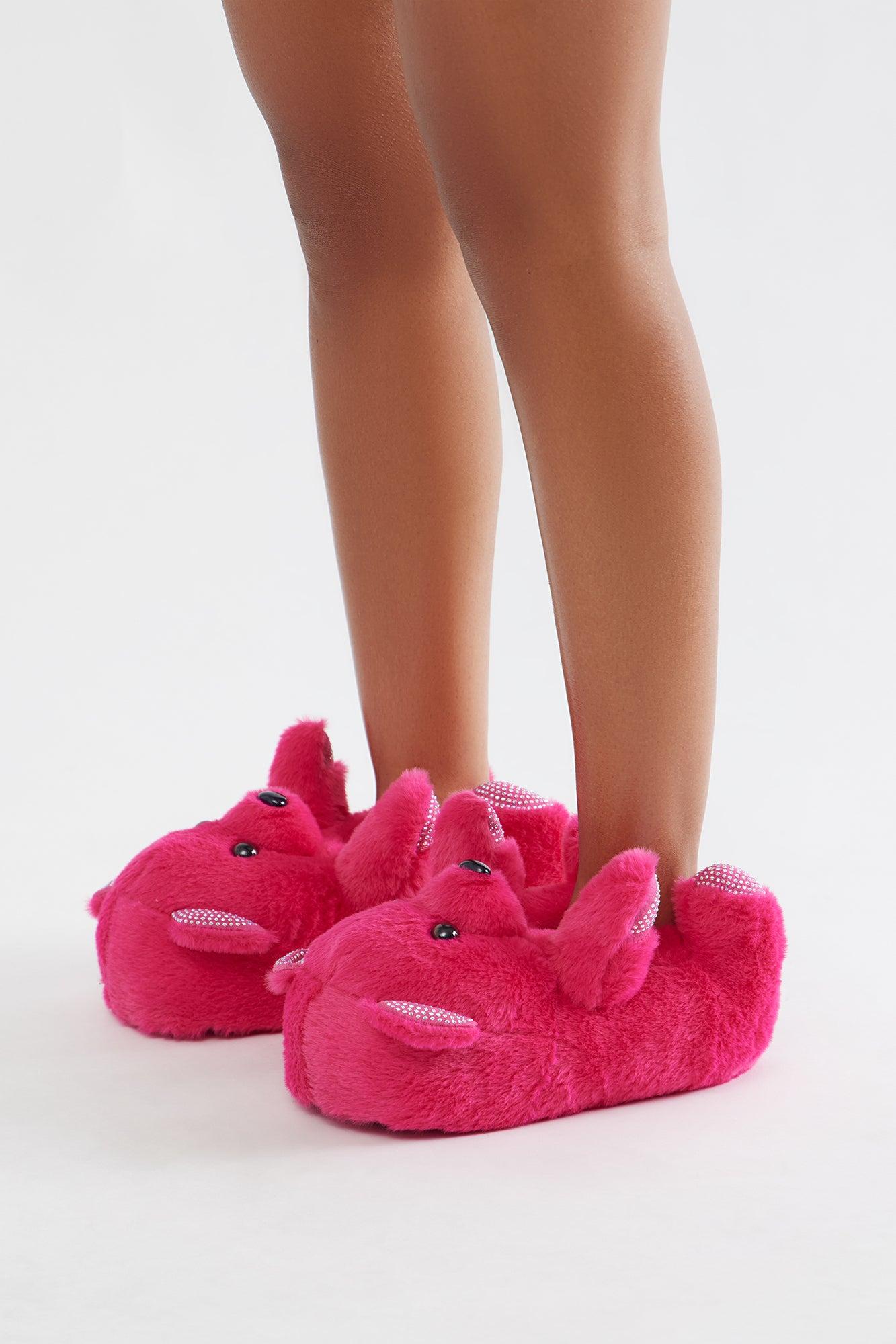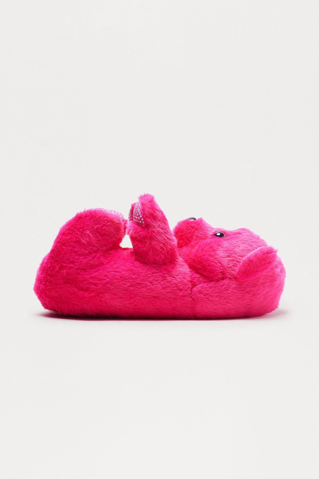 Available In Black, Brown, Fuchsia And White. Closed Toe Slippers Faux Fur Rhinestone Embellishment Disclaimer: Rhinestone Placement Will Vary. 3D Bear Applique Flat Heel Novelty Bear Toe Imported California Proposition 65WARNING: Cancer and Reproductive Harm - www.P65Warnings.ca.gov.