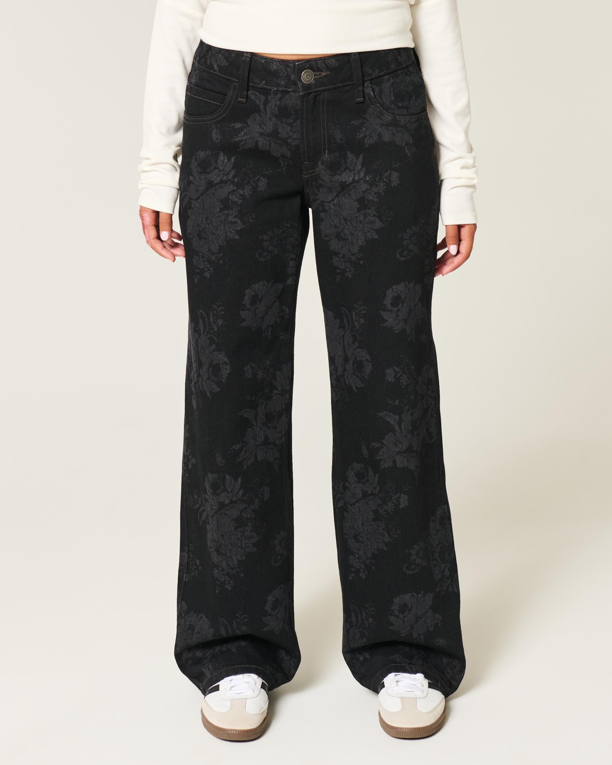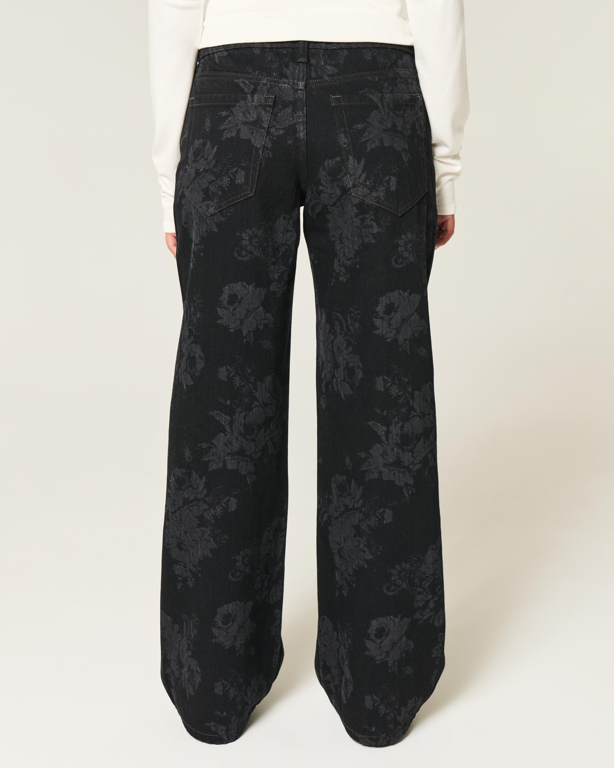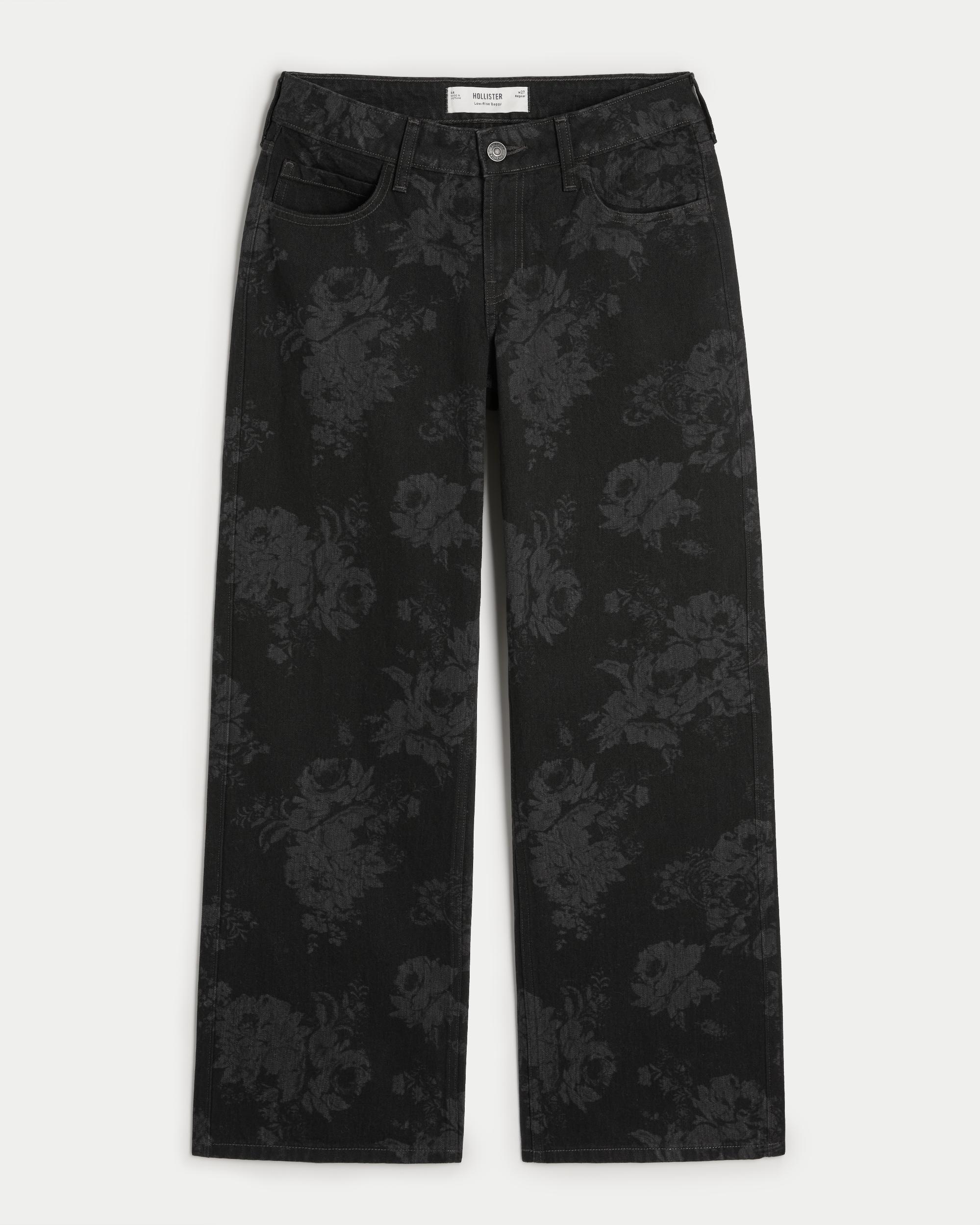 Low-Rise Black Floral Baggy Jeans