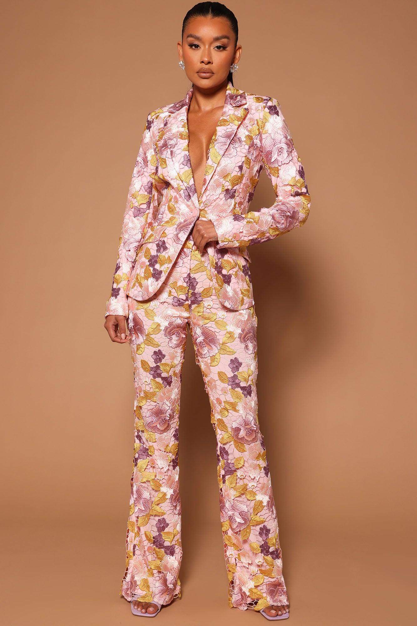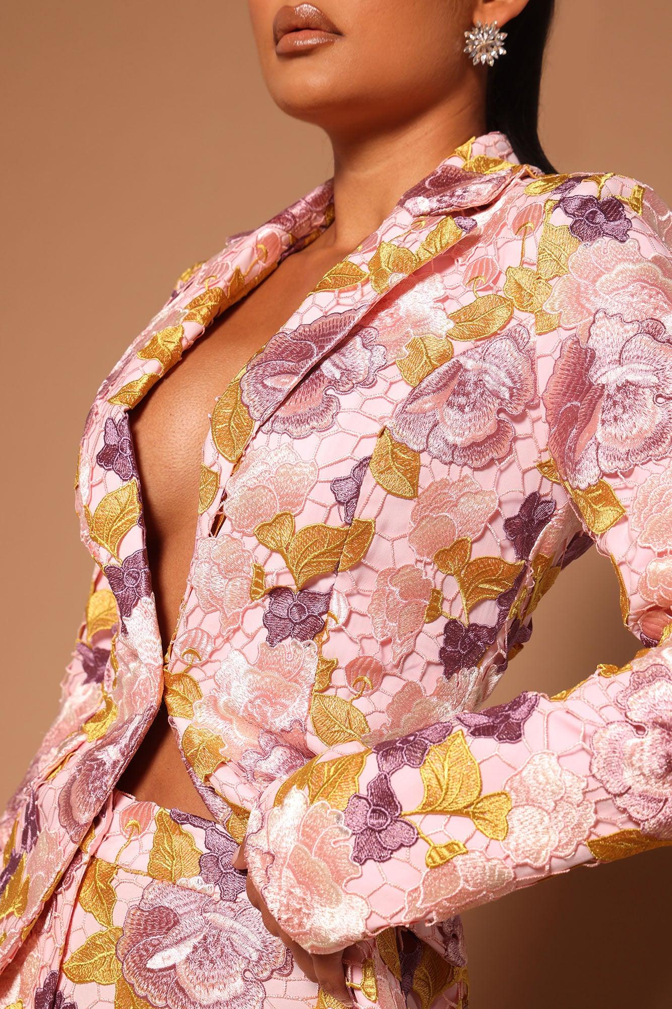 Available In Pink/combo. Embroidered Blazer Lapel Collar Long Sleeve Shoulder Pads Front Button Closure Faux Pockets Lined Non Stretch Disclaimer: Due To The Embroidery Placement , Each Garment Is Unique. Main: 100% Polyester Lining: 100% Polyester Imported