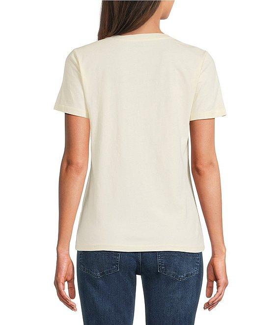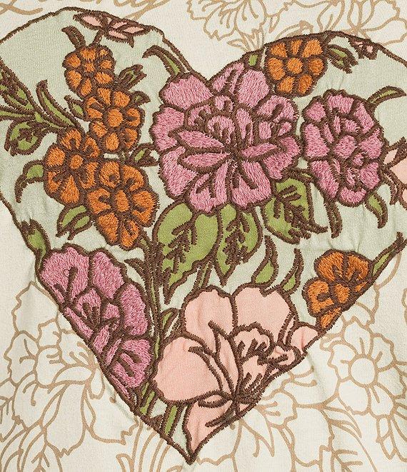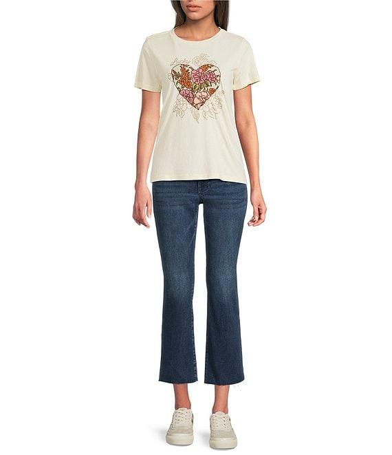 Lucky Brand Knit Crew Neck Short Sleeve Heart Print Tee
