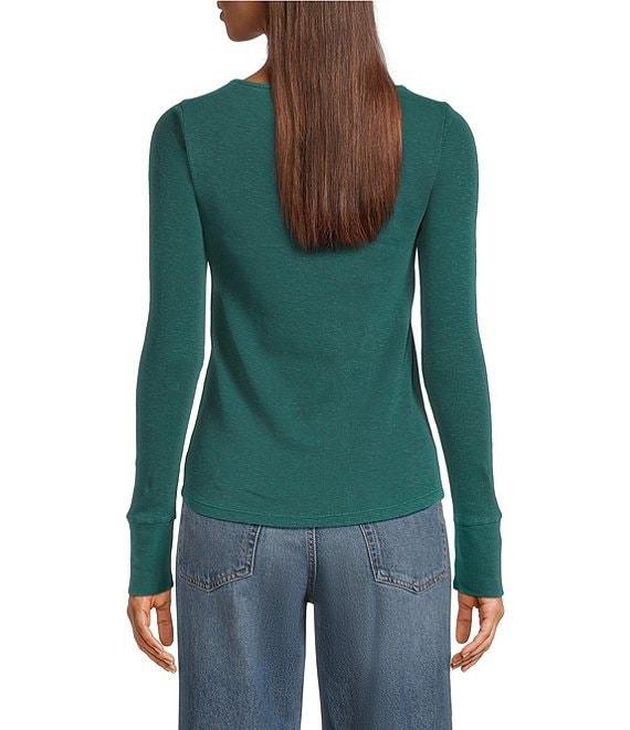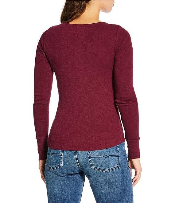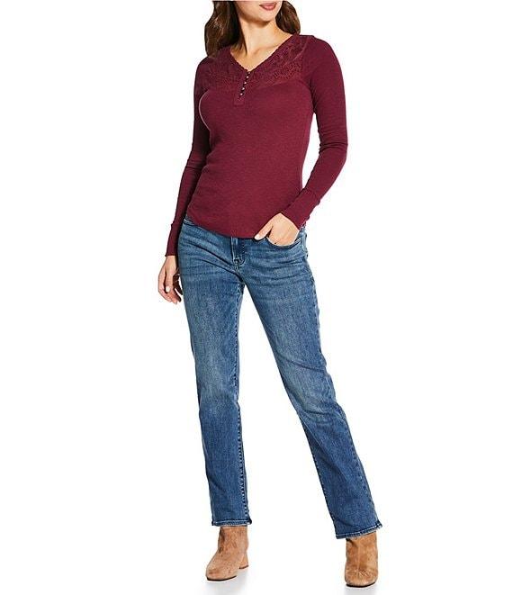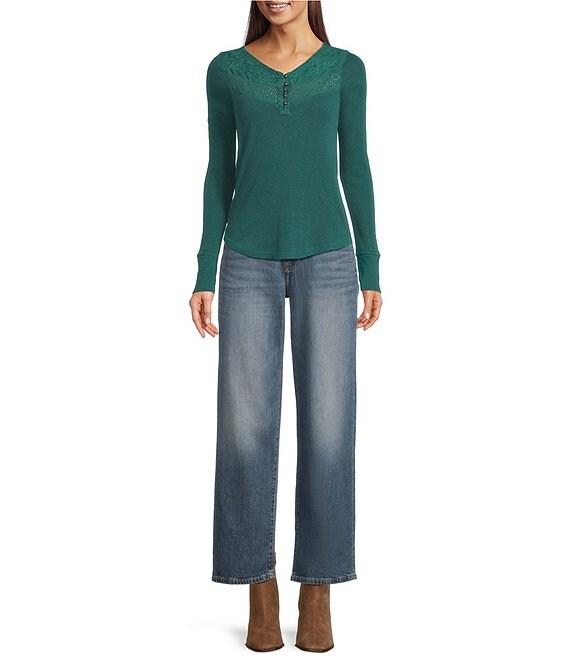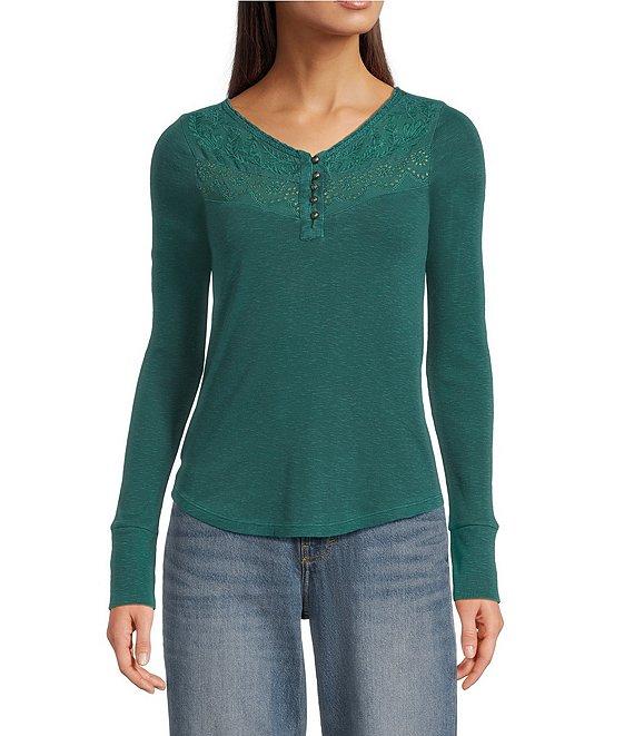 Lucky Brand Knit Lace V-Neck Long Sleeve Henley Shirt