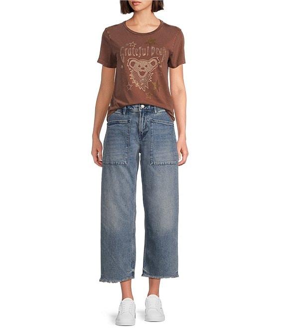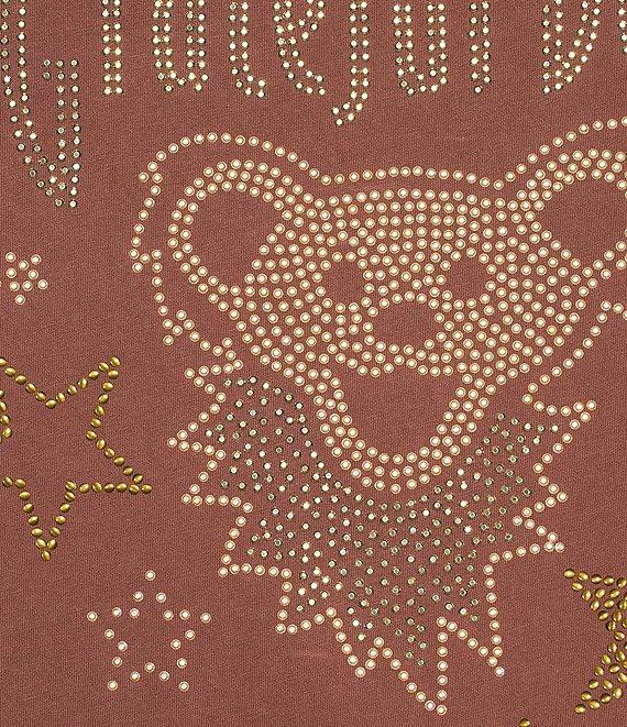 Lucky Brand Knit Studded Grateful Dead Bear Crew Neck Short Sleeve Tee
