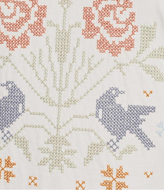 Lucky Brand Ribbed Knit Floral Print Crew Neck Short Sleeve Tee