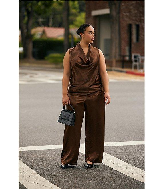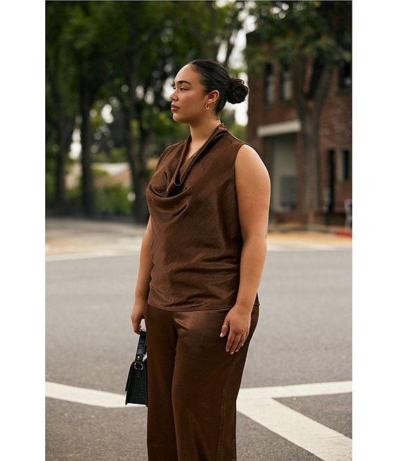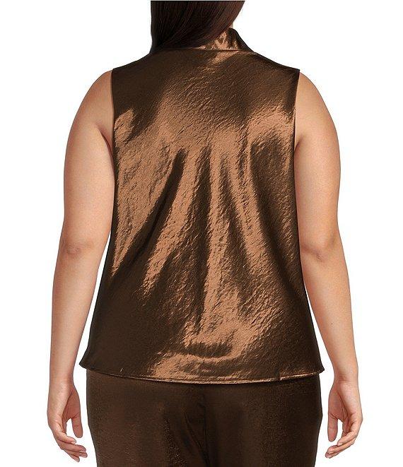 Lucy Paris Plus Size Dorothy Coordinating Woven Statin Sleeveless V-Neck Top