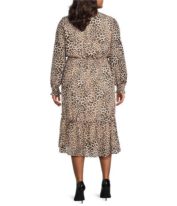 Lucy Paris Plus Size Leopard Print Long Sleeve Midi Dress