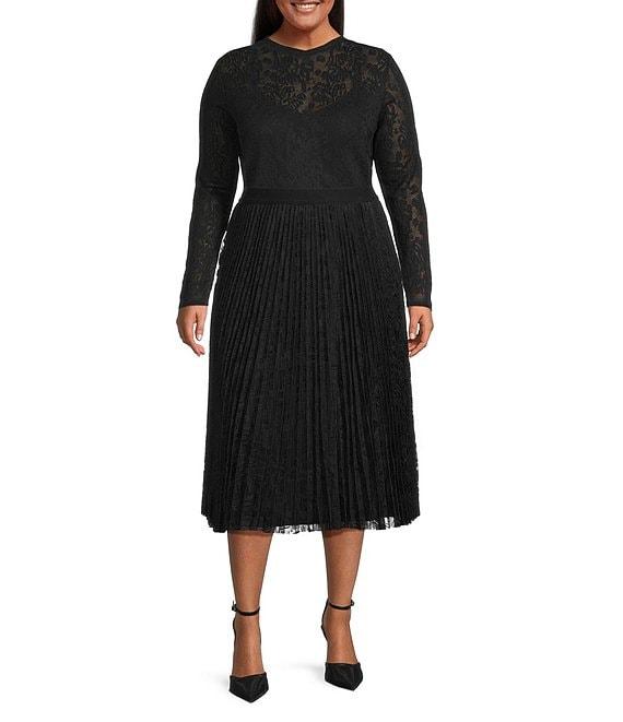 Lucy Paris Plus Size Mesa Lace Scoop Neck Long Sleeve Knit Top