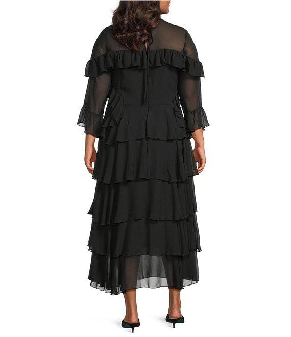 Lucy Paris Plus Size Ruffle Scoop Neck 3/4 Sleeves Tiered Fit & Flare Maxi Dress