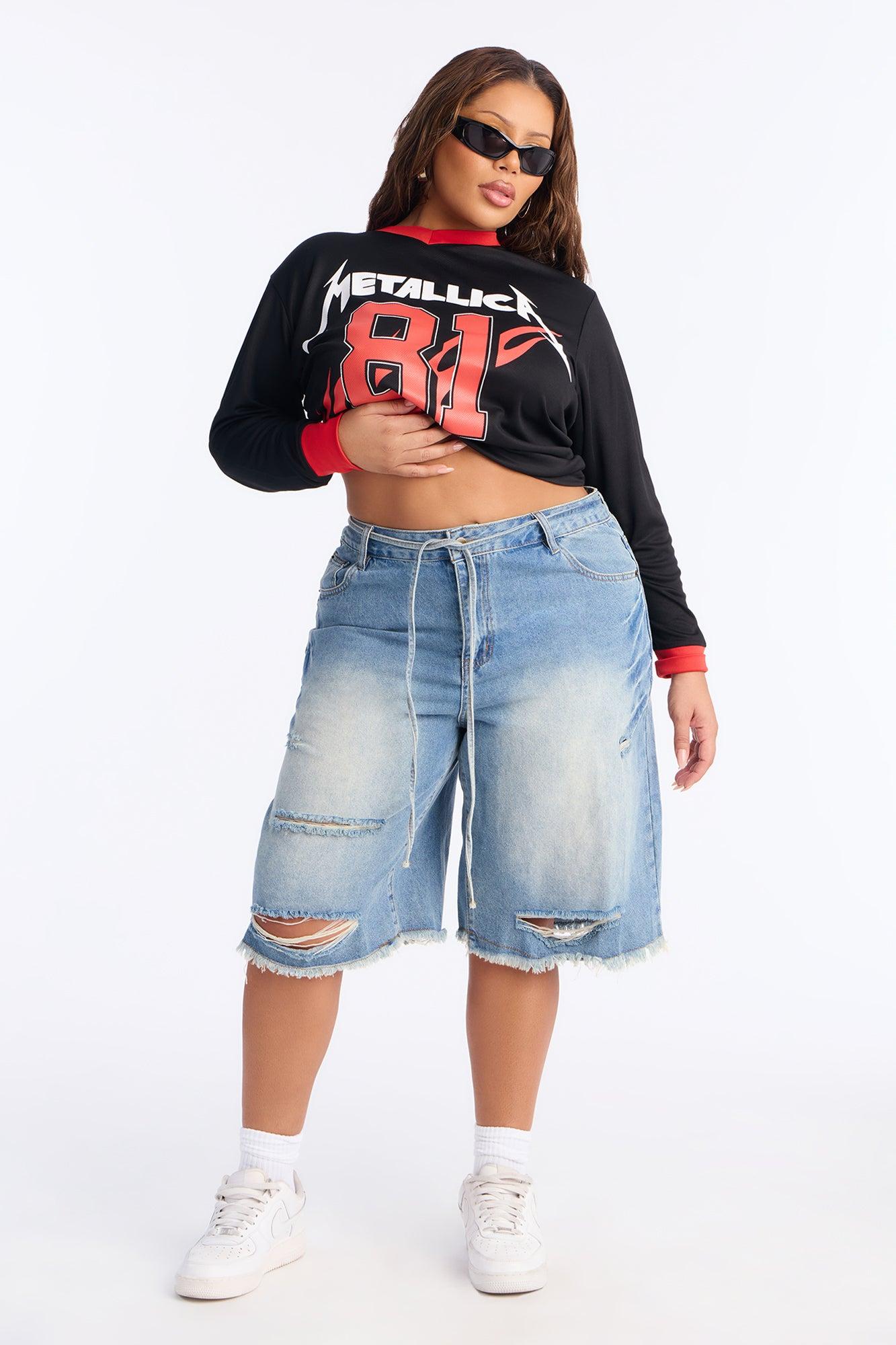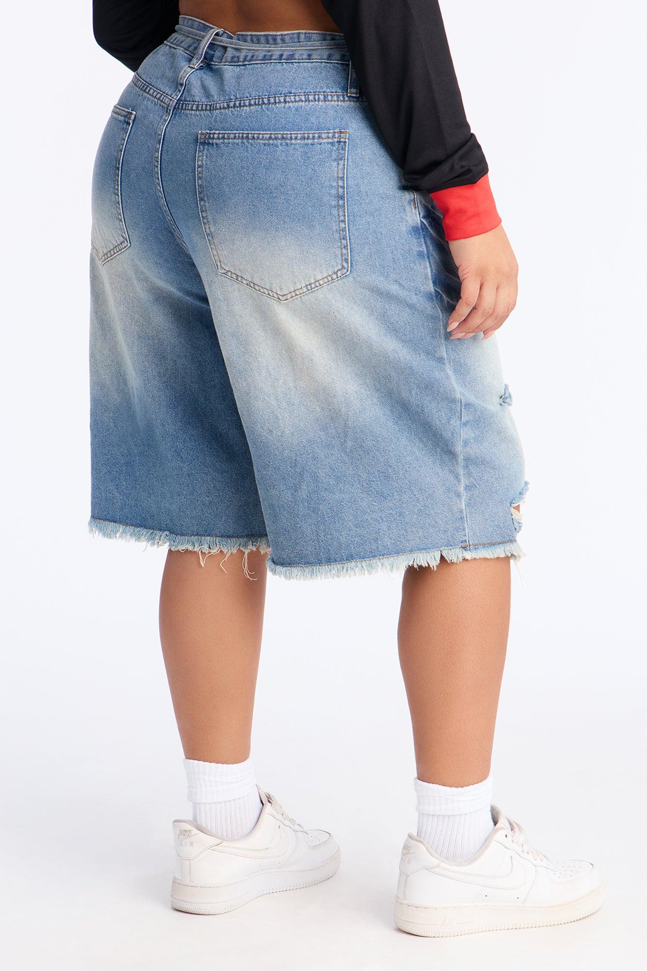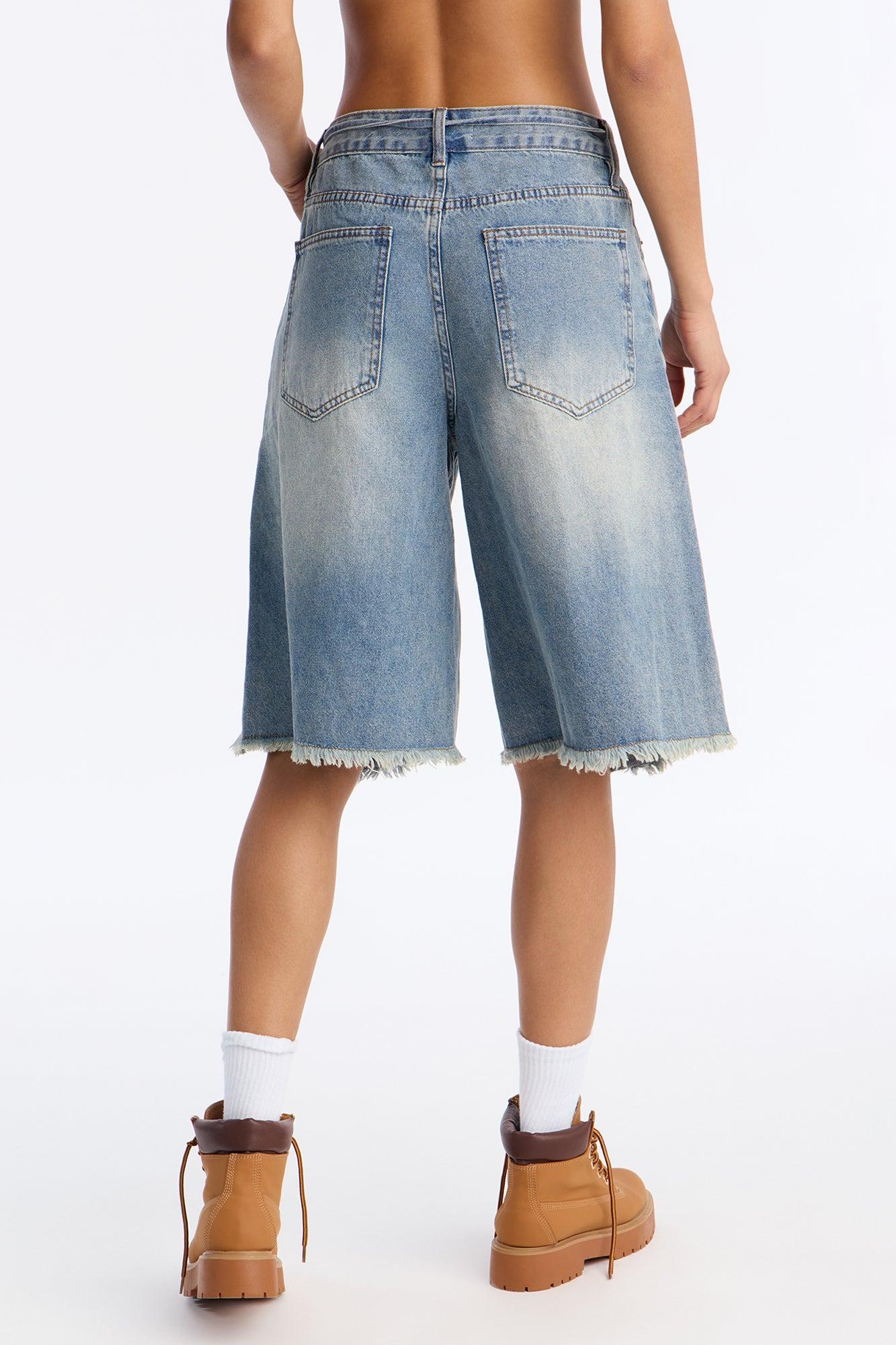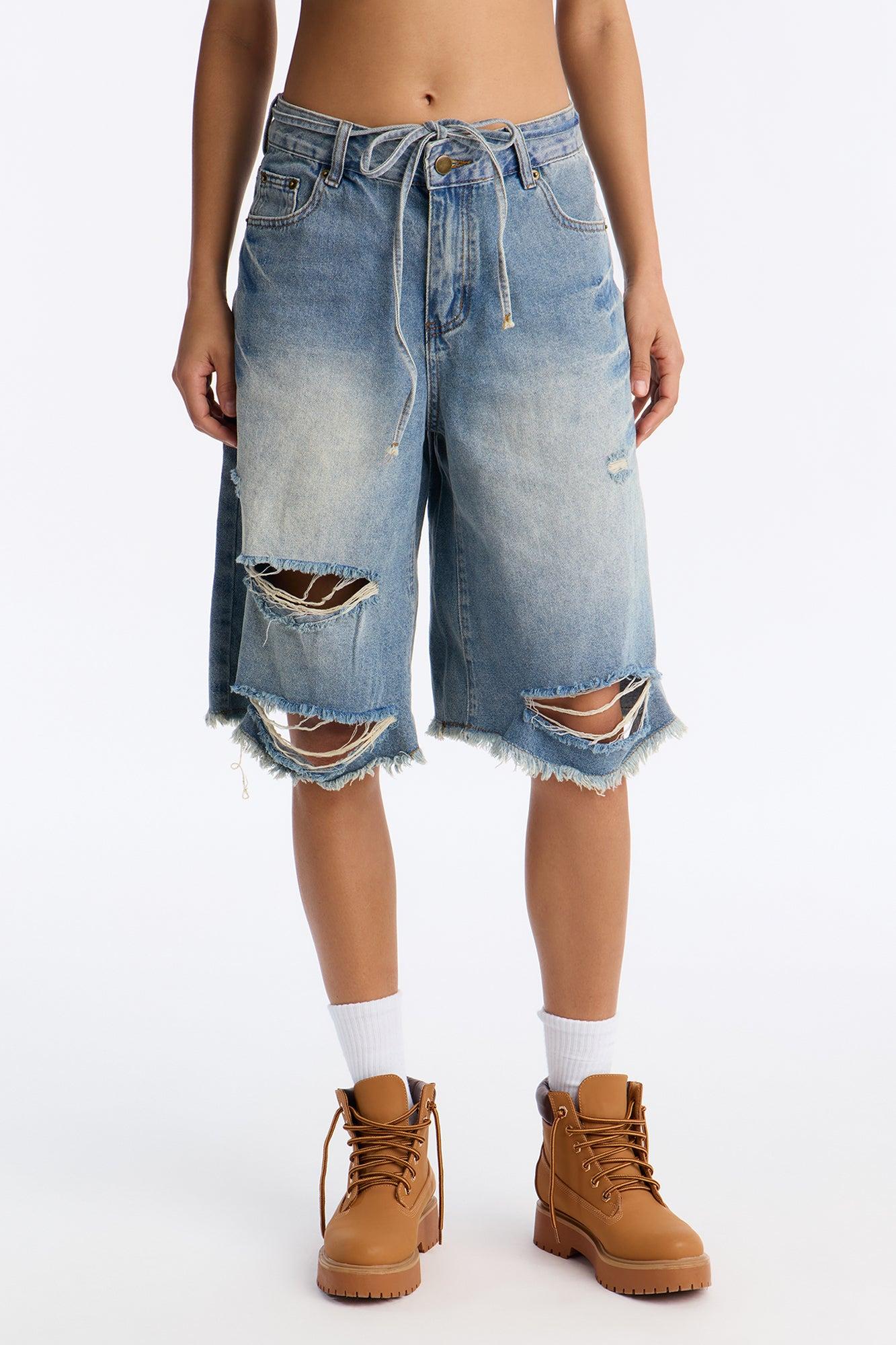 Ludlow Drawstring Ripped Denim Jorts - Vintage Wash Female