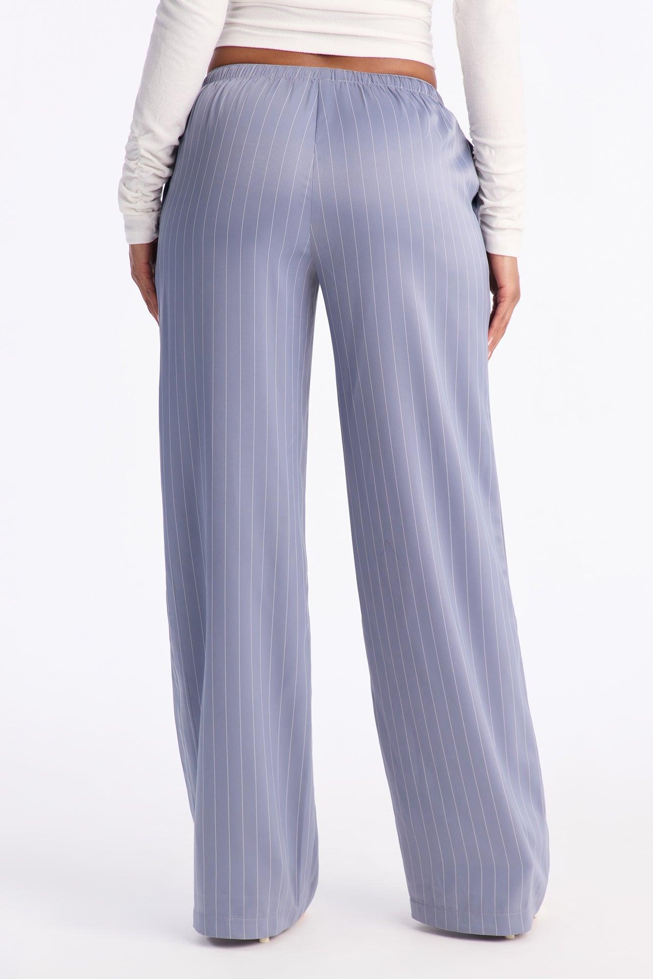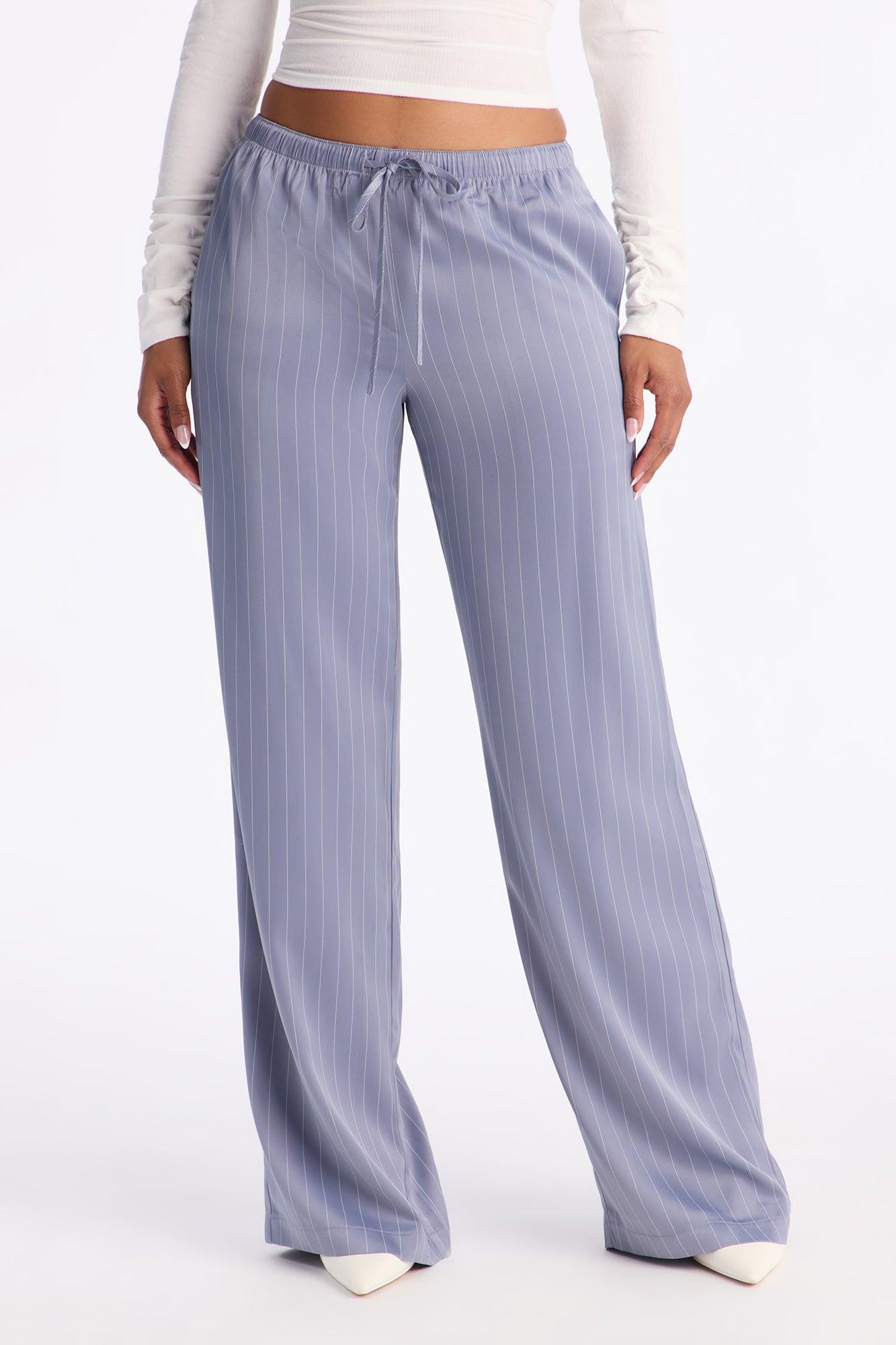 Lulu Pinstripe Satin Wide Leg Pant 32″ - Slate Blue Female