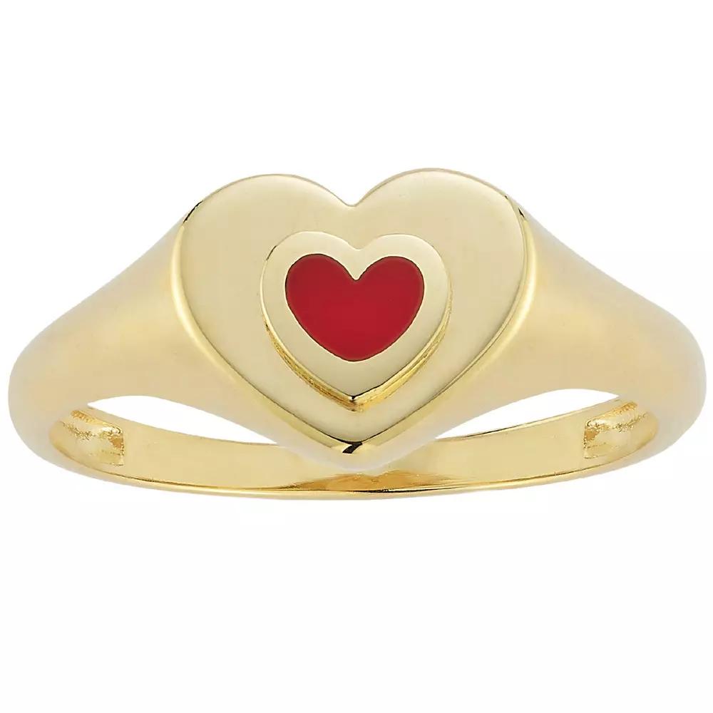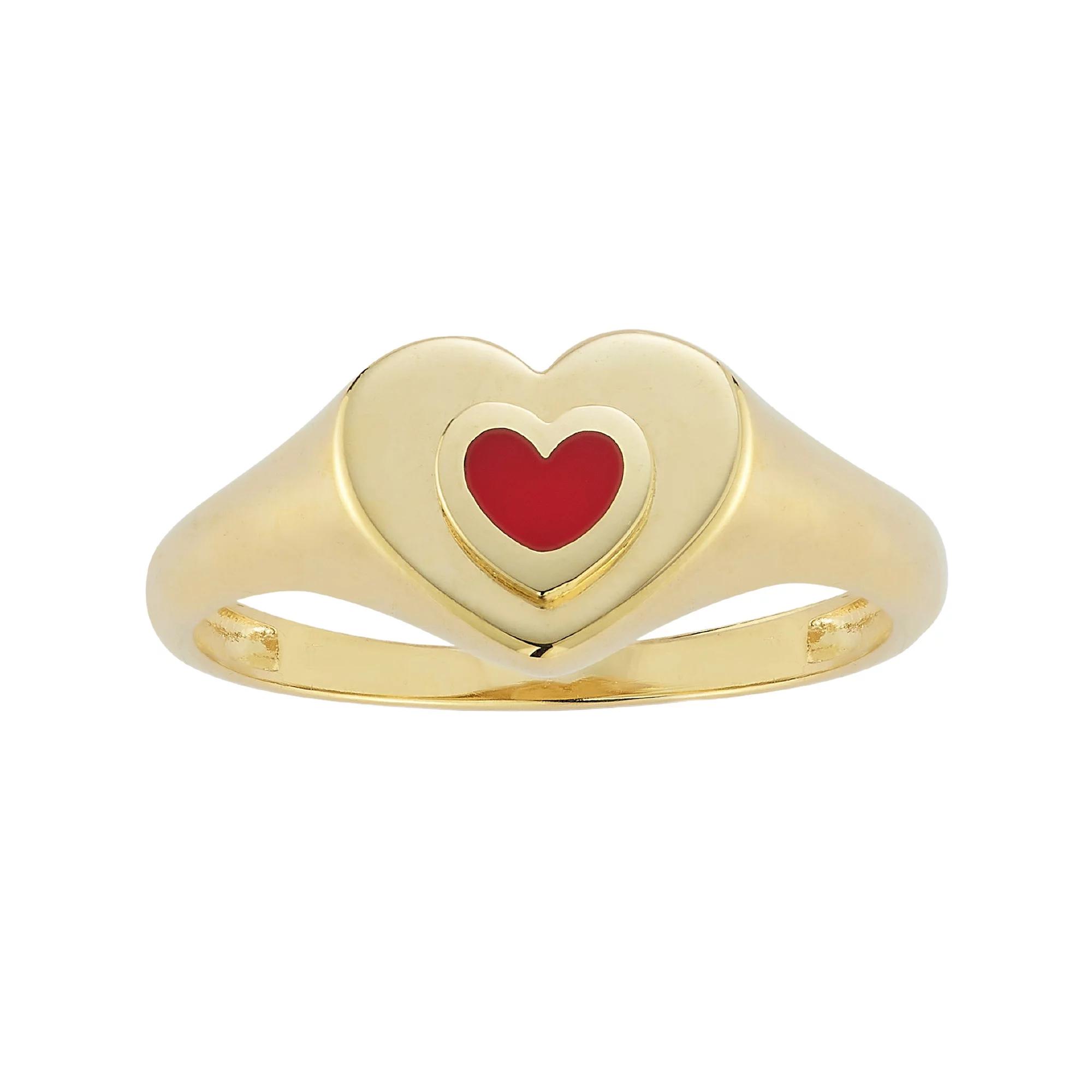 Accessorize in style with this LUMINOR GOLD 14k Gold Enamel Heart Signet Ring. Click on this JEWELRY & WATCHES GUIDE to learn about fit, styles, materials and more! Accessorize in style with this LUMINOR GOLD 14k Gold Enamel Heart Signet Ring. Click on this JEWELRY & WATCHES GUIDE to learn about fit, styles, materials and more! FEATURES Width: 1.5 mm - 8 mm Shank style: stackable Nickel free Metal: 14k gold Plating: 14k gold Finish: polished Packaging: velvety pouch Imported Size: 6. Gender: female. Age Group: adult.