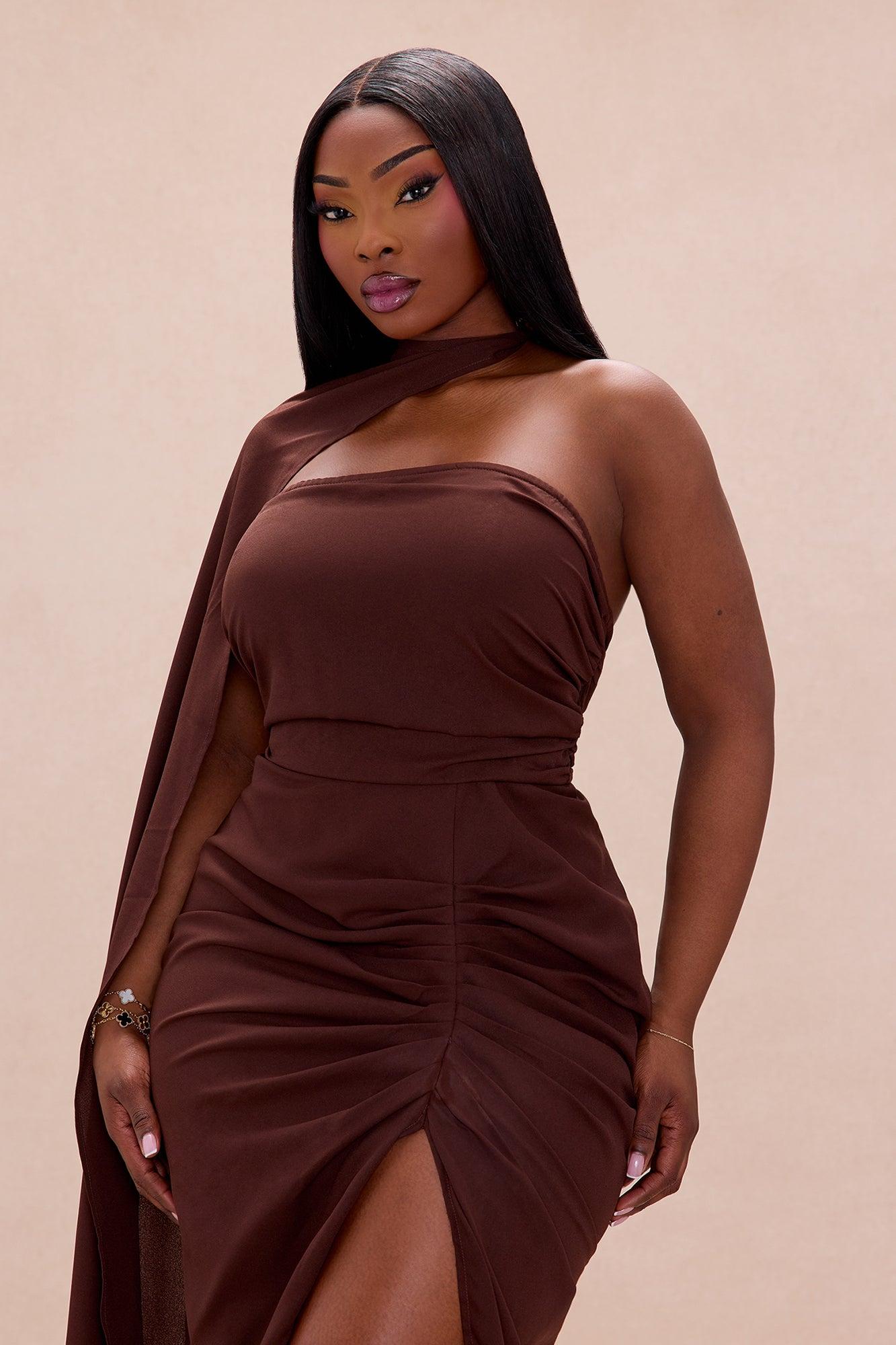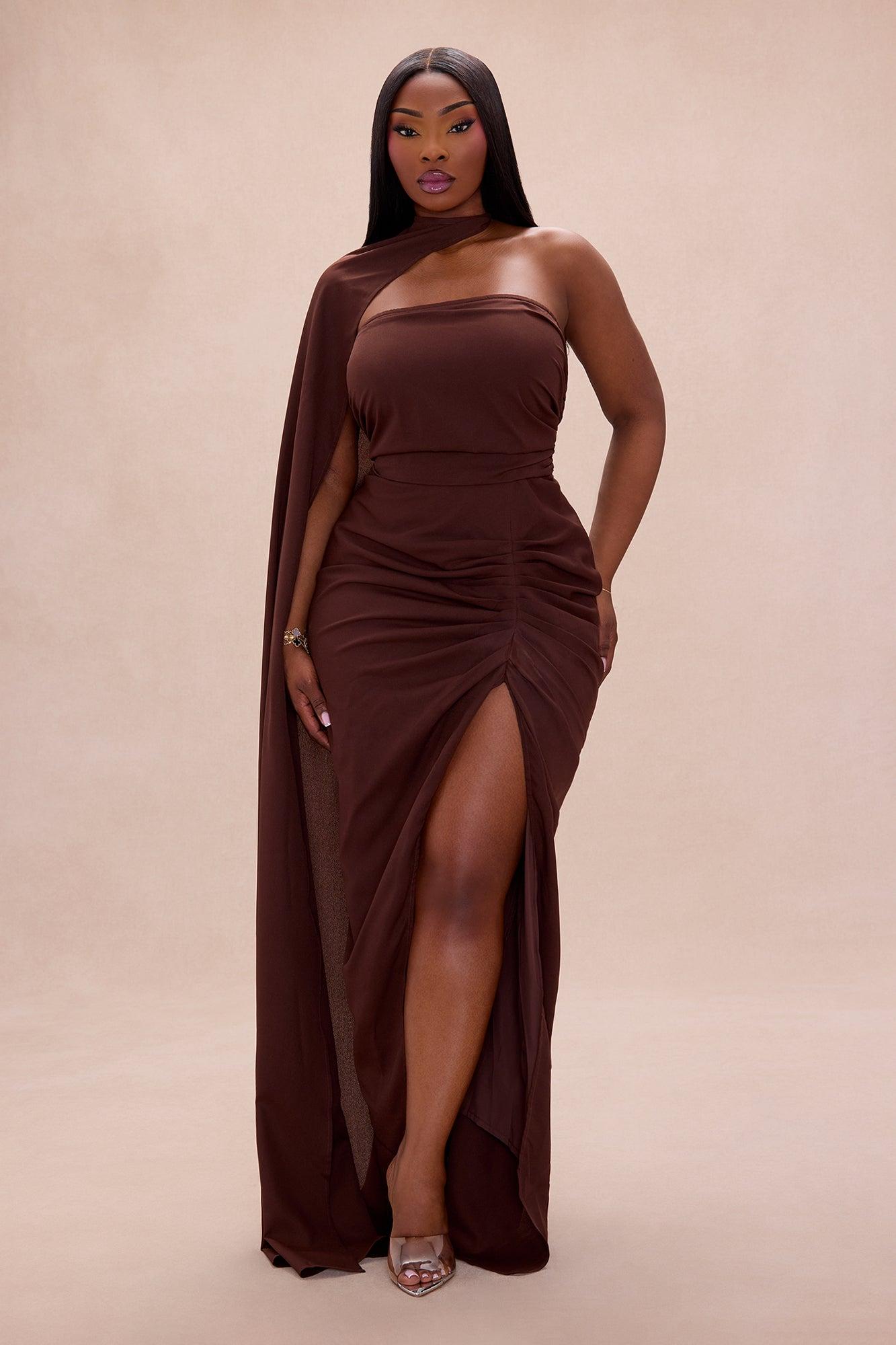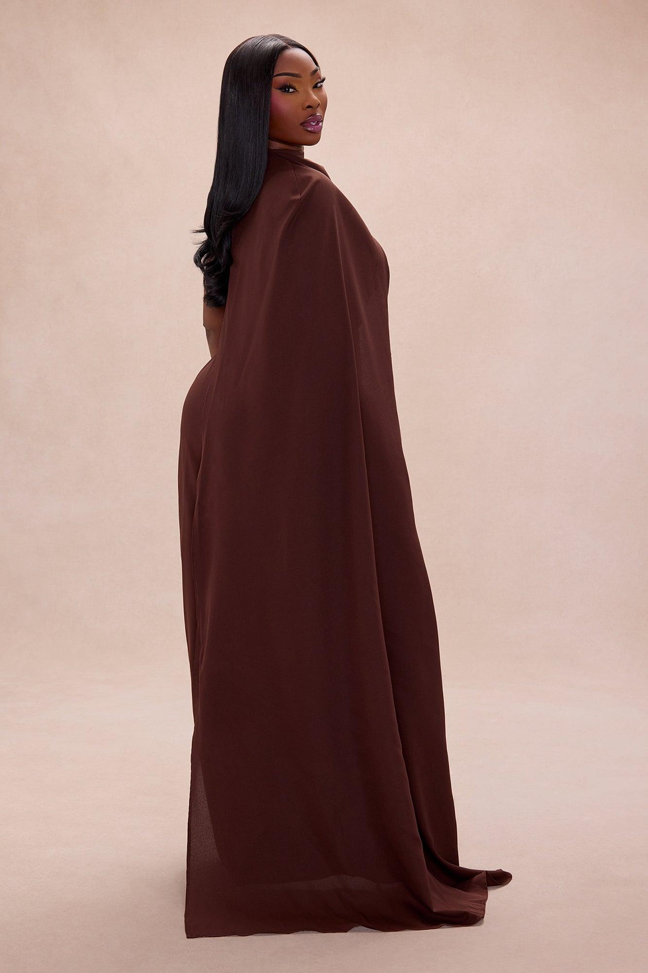 Luna Draped Sleeve Chiffon Maxi Dress - Chocolate Female