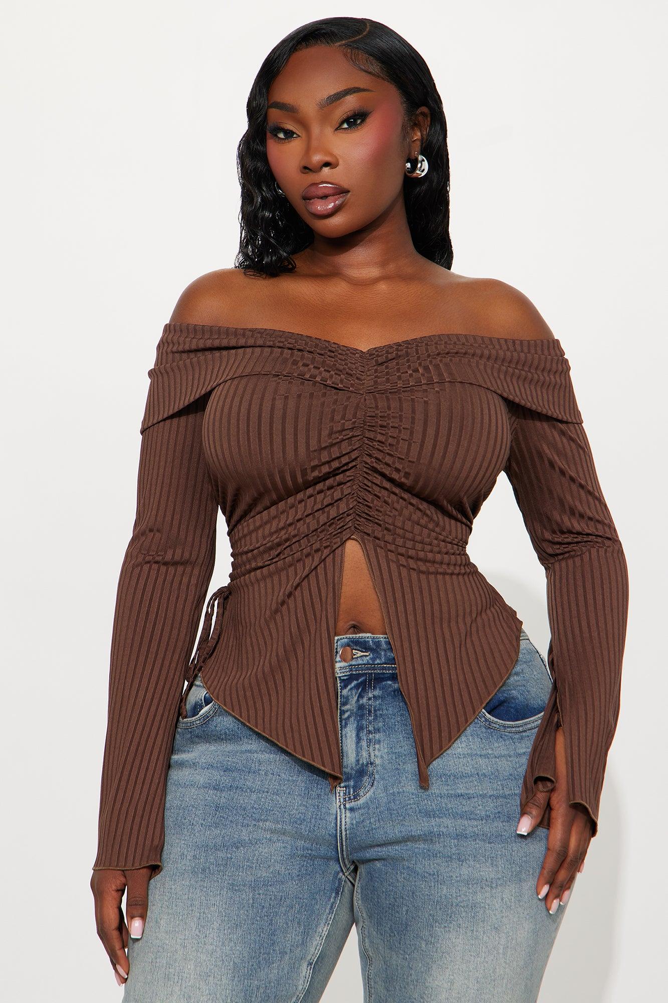 Luna Off Shoulder Top - Brown Female