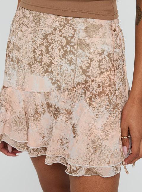 Multi tiered Mini skirt Tie detail at side, invisible zip fastening at side, mid-rise fit Non-stretch material, fully lined 100% polyester Cold gentle machine wash