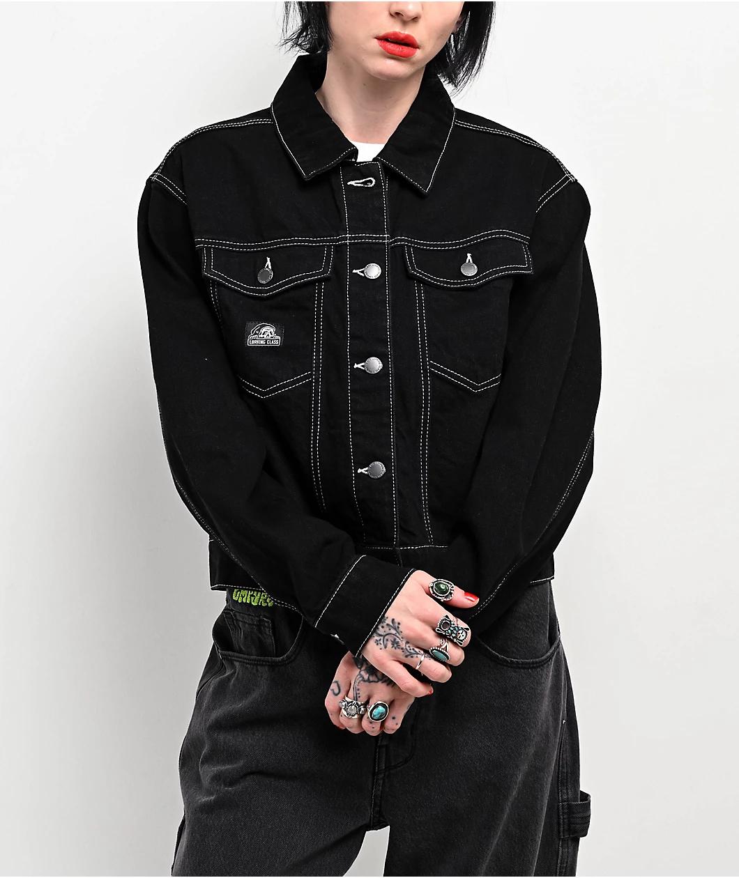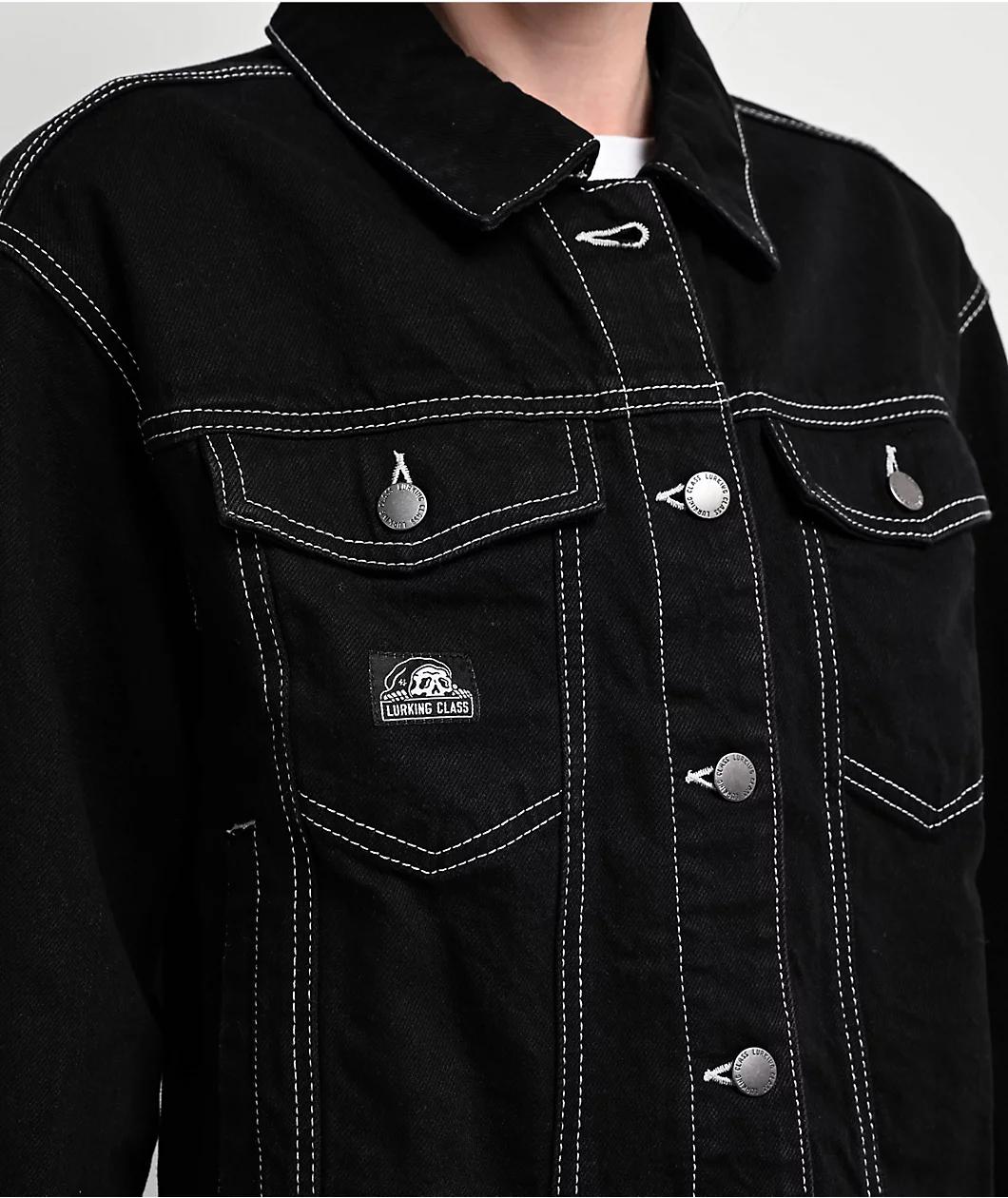 Born from a black denim construction with white contrast stitching throughout, the Skullfly jacket from Lurking Class by Sketchy Tank arrives with branded hardware on the full button closure for a luxury accent. Featuring dual slash hand pockets and