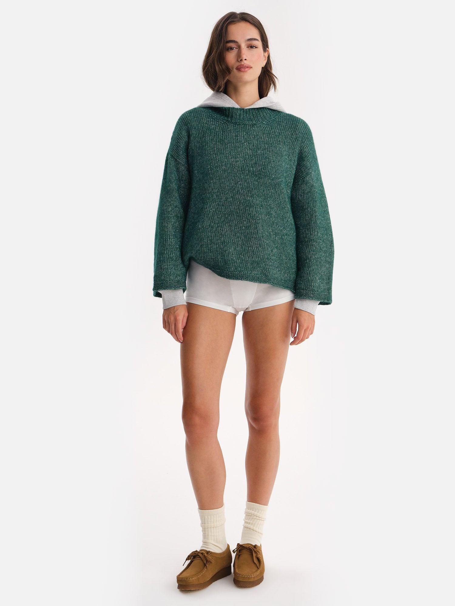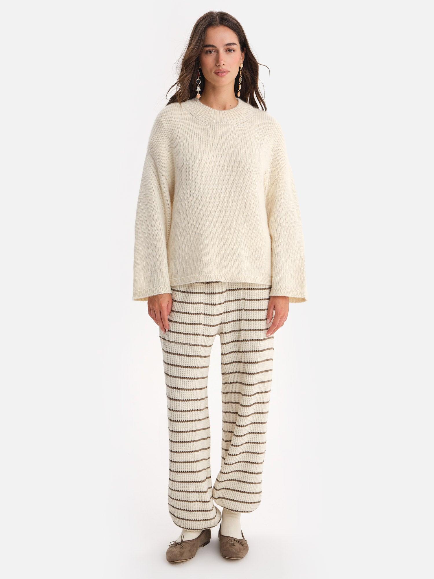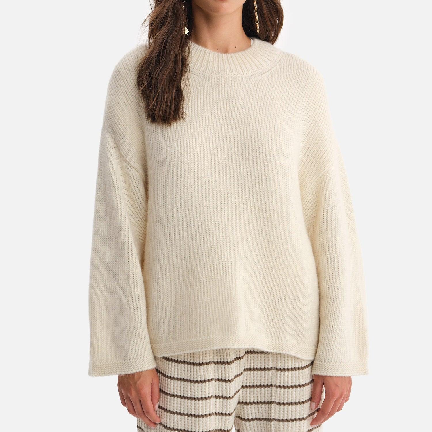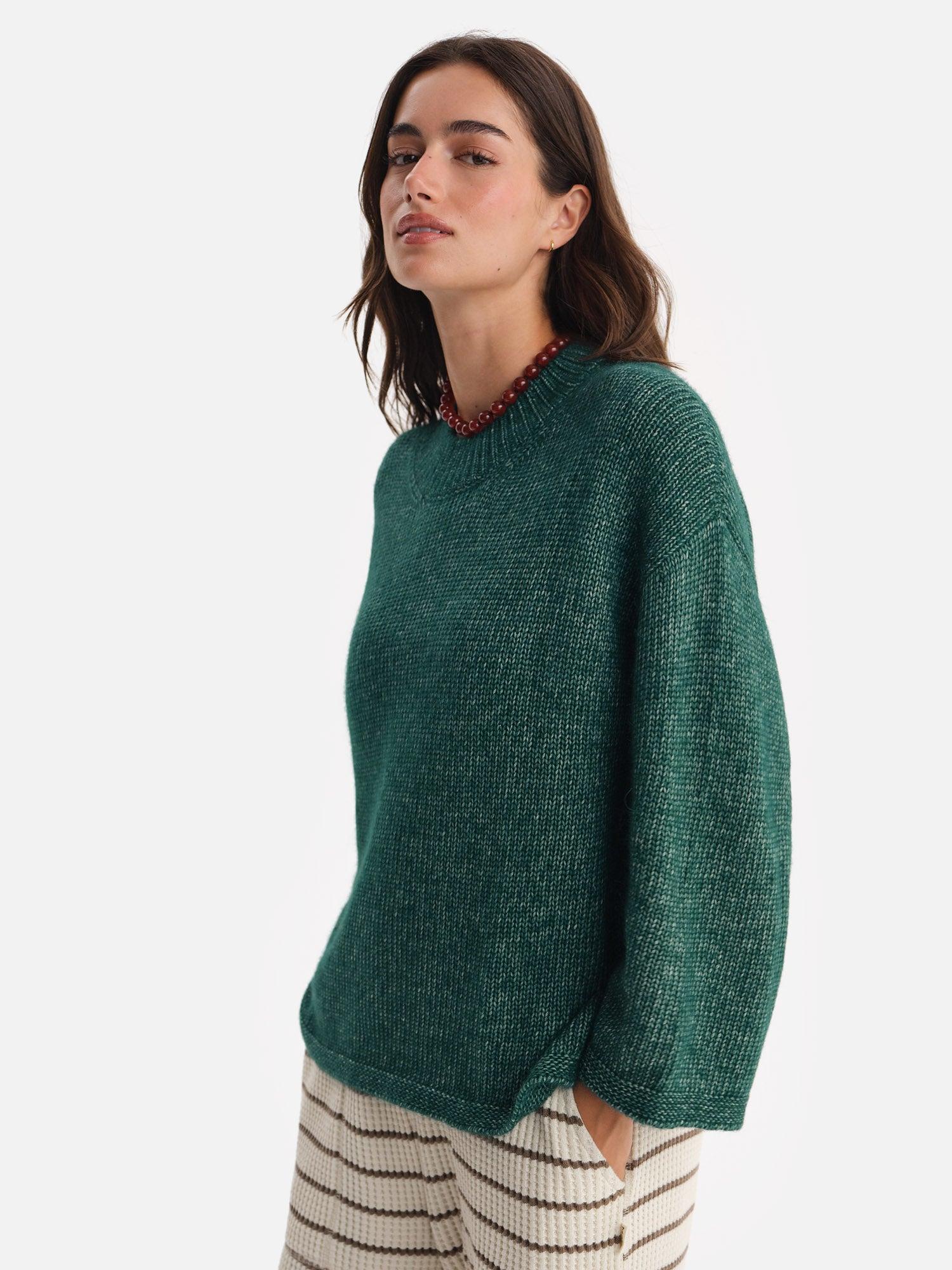 - Luxe Alpaca Crewneck Pullover - Boxy, relaxed fit -Ribbed detail at neck - 50% Organic Cotton, 42% Baby Alpaca, 8% Merino Wool - Dry Clean OnlyMeasurements - XS : Chest 35 in; Length 23 in - S : Chest 37 in; Length 23.5 in - M : Chest 39 in; Length 24 in - L : Chest 41 in; Length 24.5 in - XL : Chest 44 in; Length 25 in Cost Per Wear - 5 Wears : $43.60 - 10 Wears : $21.80 - 25 Wears : $8.72 - 50 Wears : $4.36
