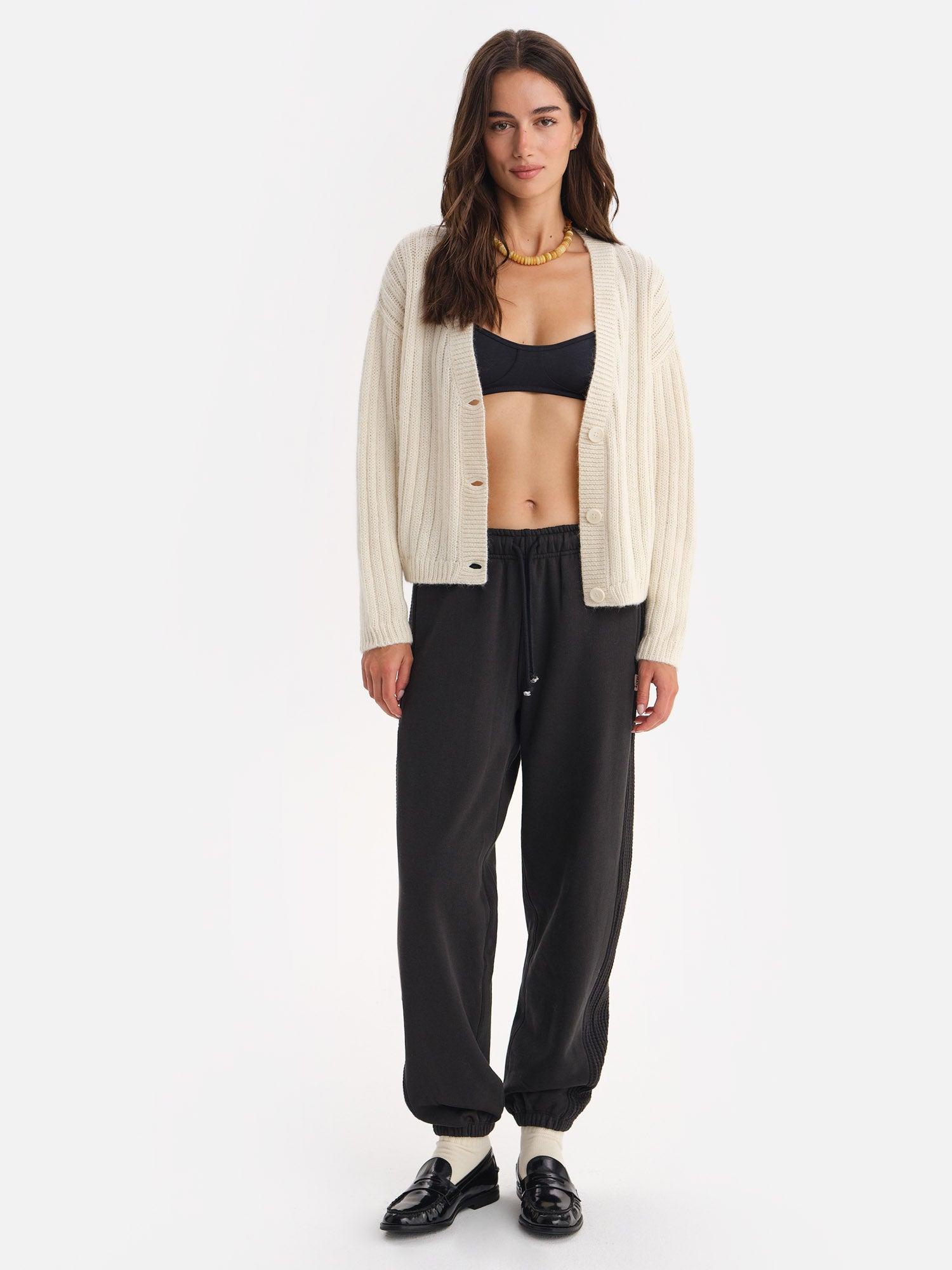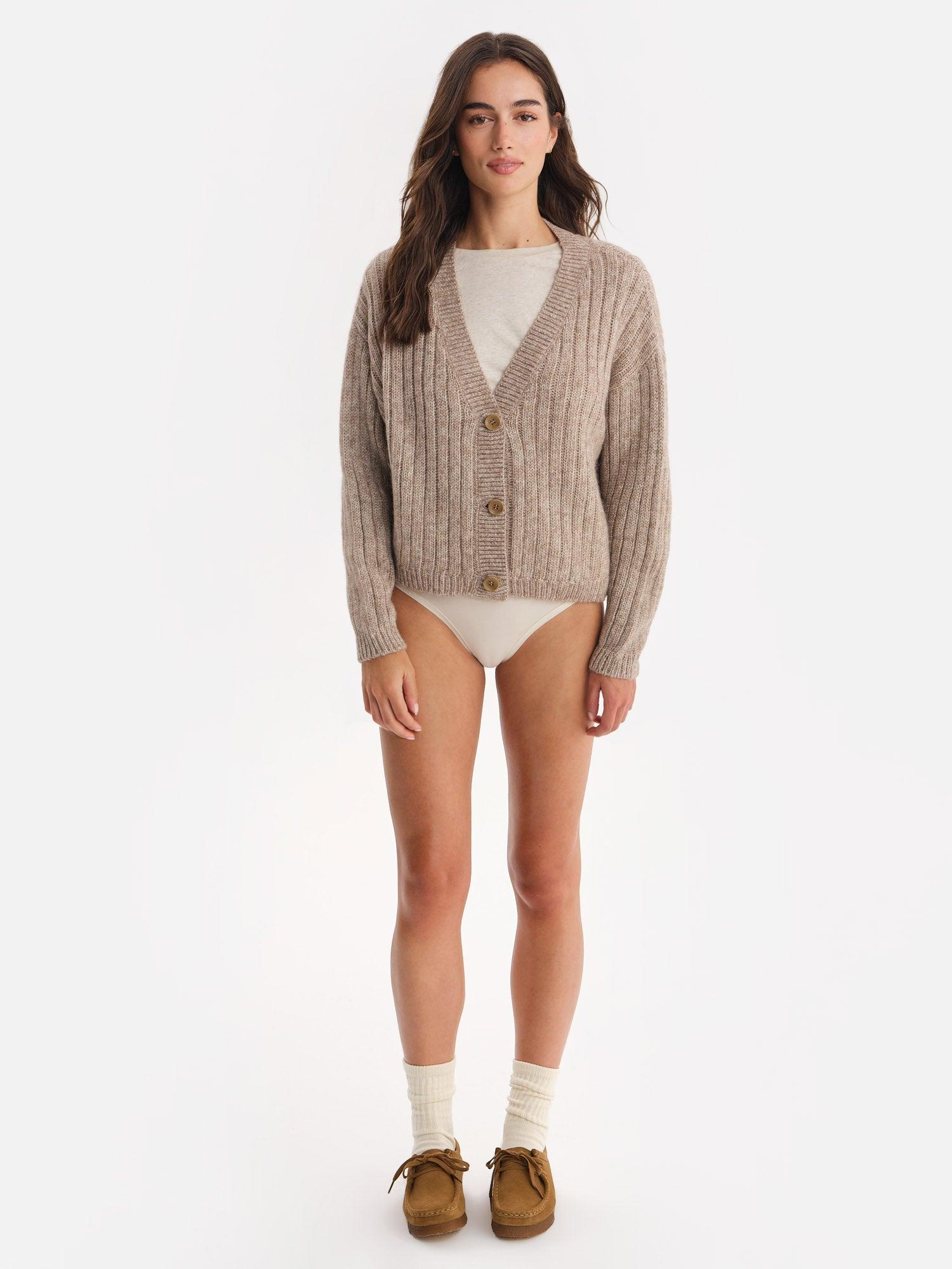 - Luxe Alpaca Ribbed Cardigan - Boxy, slightly cropped fit - Corozo button closure - 50% Organic Cotton, 42% Baby Alpaca, 8% Merino Wool - Dry Clean OnlyMeasurements - XS : Chest 40 in; Length 19.25 in - S : Chest 42 in; Length 19.75 in - M : Chest 44 in; Length 20.25 in - L : Chest 46 in; Length 20.75 in - XL : Chest 49 in; Length 21.25 in Cost Per Wear - 5 Wears : $53.60 - 10 Wears : $26.80 - 25 Wears : $10.72 - 50 Wears : $5.36