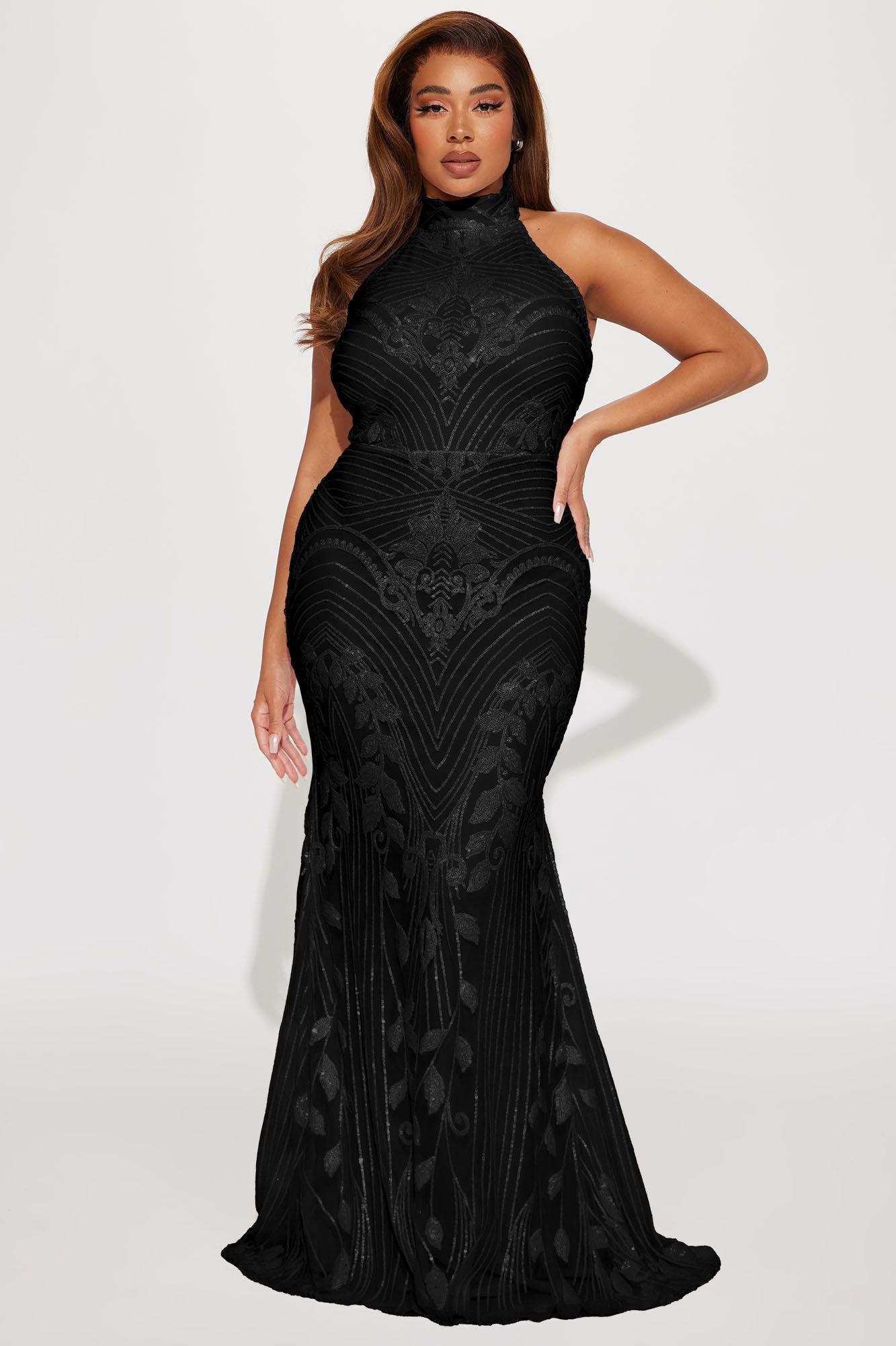 Available In Black And White. Sequin Maxi Dress Sleeveless Mock Neck Hidden Back Zipper Lined Stretch Self: 95% Polyester 5% Spandex Lining: 100% Polyester Imported California Proposition 65WARNING: Cancer and Reproductive Harm - www.P65Warnings.ca.gov.