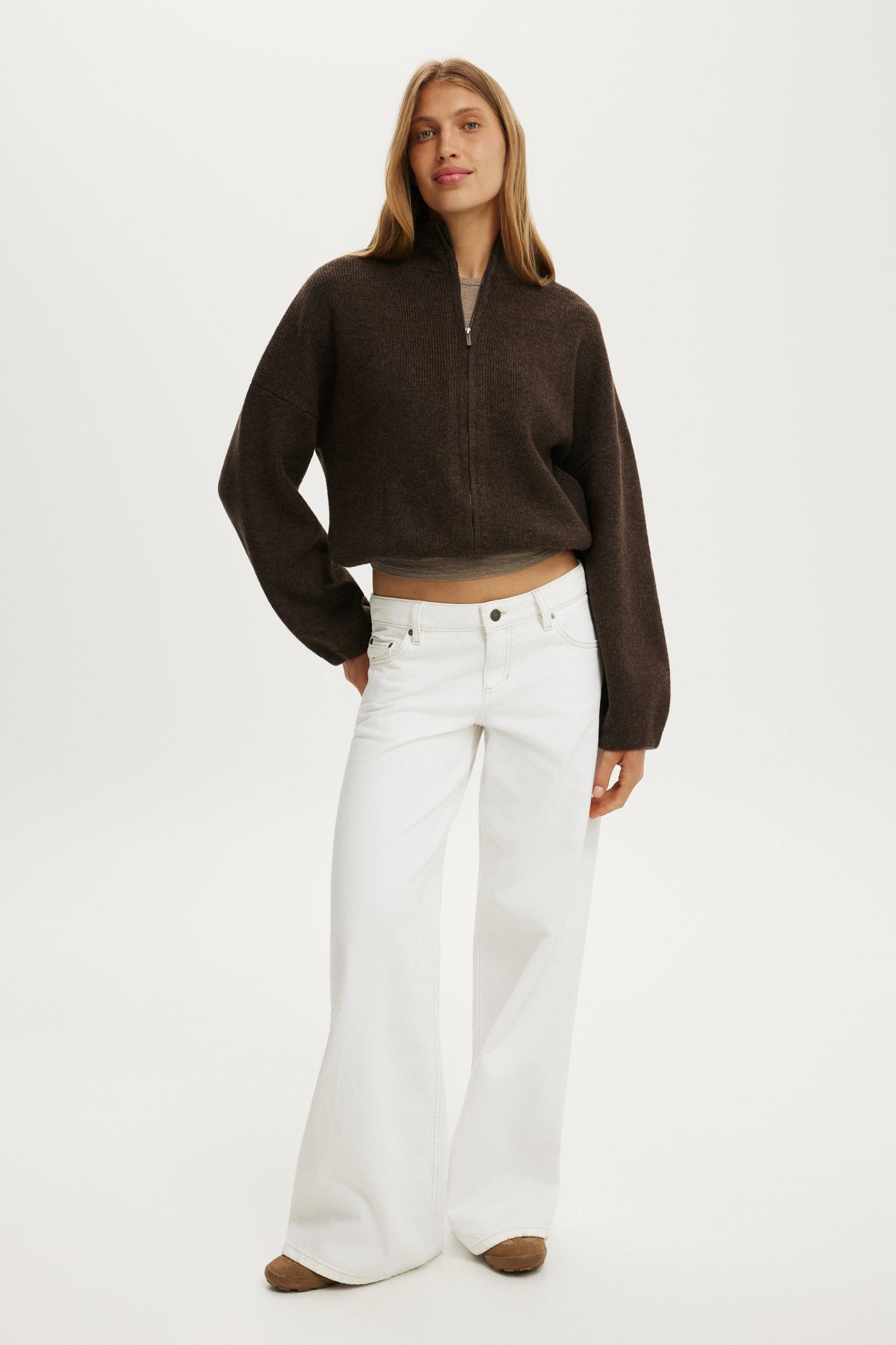 This thick knit bomber knit has a soft hand feel with a relaxed fit and elasticated hem. Wear it tucked up for an effortlessly cool, off-duty look.