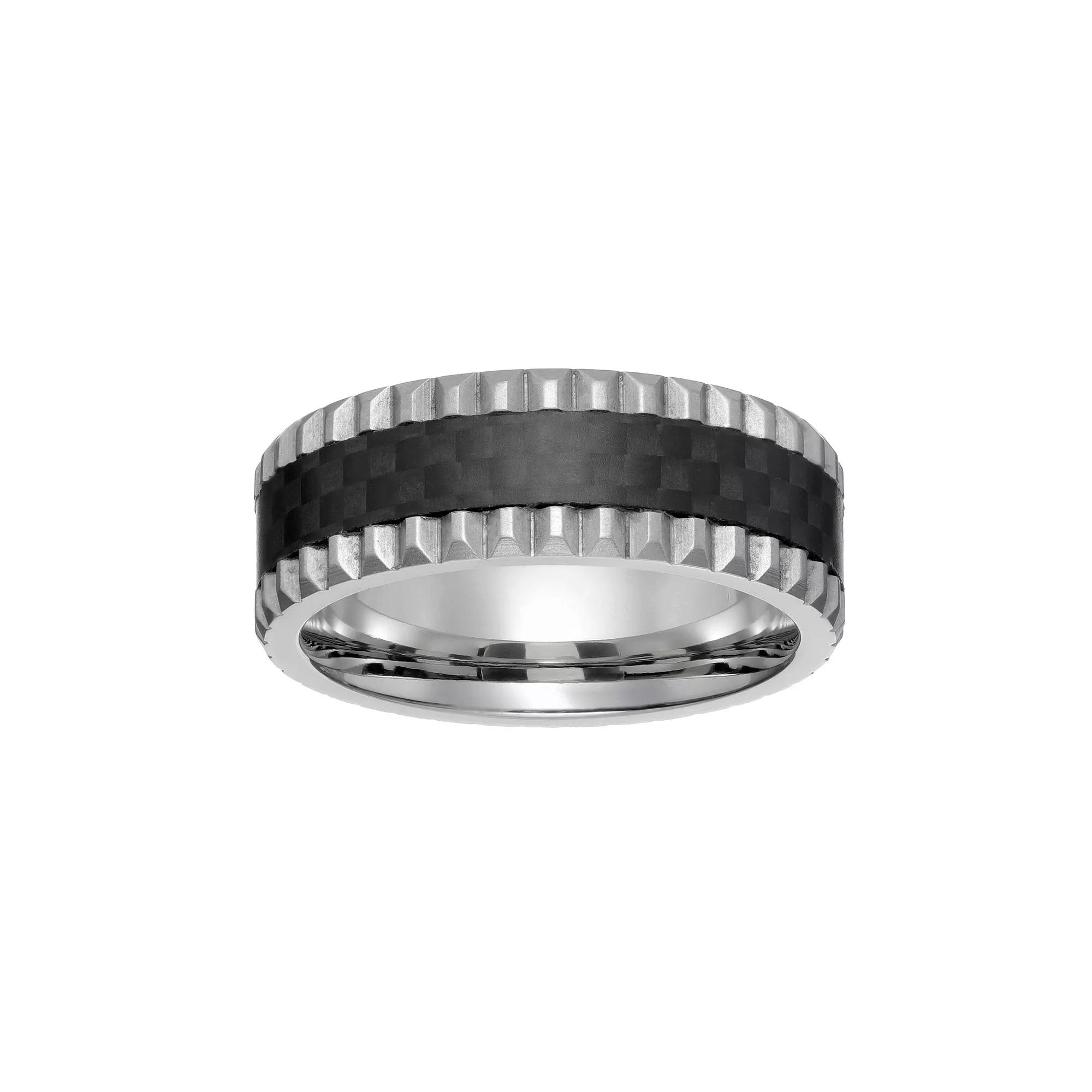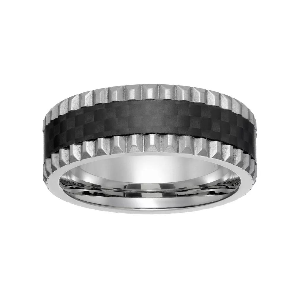 Featuring a grooved design and carbon fiber strip, this men's stainless steel ring makes a handsome addition to your ensemble.RING DETAILS Width: 8 mm Metal: stainless steel Finish: polished Packaging: boxed Size: 12. Color: Grey. Gender: male. Age Group: adult.