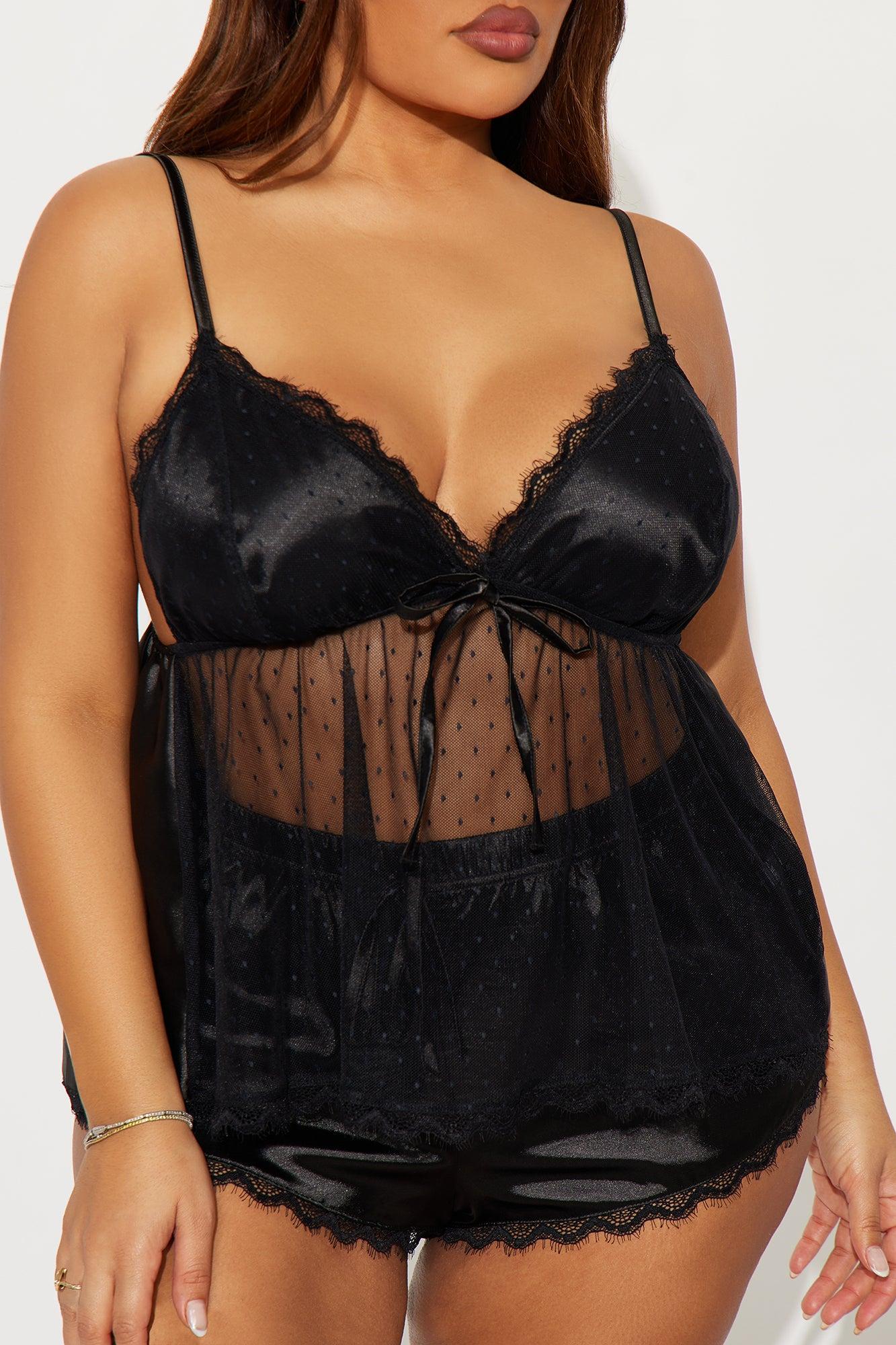 Available In Black And Pink. 2 PC Satin Babydoll Set Adjustable Straps Lace Trim Lined Bow Detail Mesh Detail Matching Short Bottoms Elastic Waistband Final Sale Self: 100% Polyester Contrast: 95% Polyester 5% Spandex Imported California Proposition 65WARNING: Cancer and Reproductive Harm - www.P65Warnings.ca.gov.