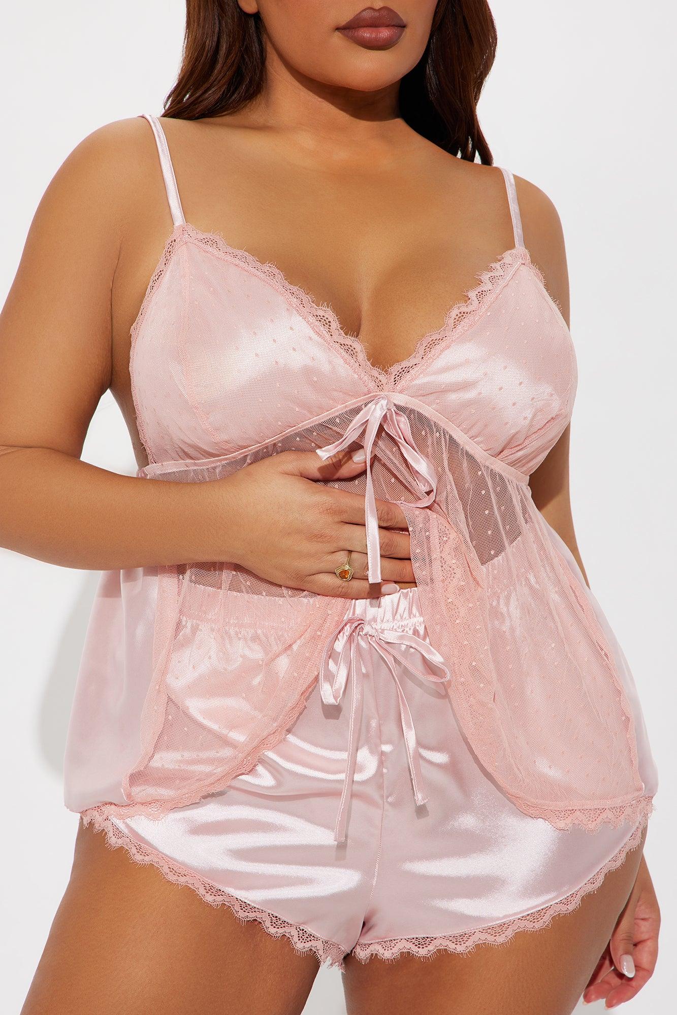 Available In Black And Pink. 2 PC Satin Babydoll Set Adjustable Straps Lace Trim Lined Bow Detail Mesh Detail Matching Short Bottoms Elastic Waistband Final Sale Self: 100% Polyester Contrast: 95% Polyester 5% Spandex Imported California Proposition 65WARNING: Cancer and Reproductive Harm - www.P65Warnings.ca.gov.