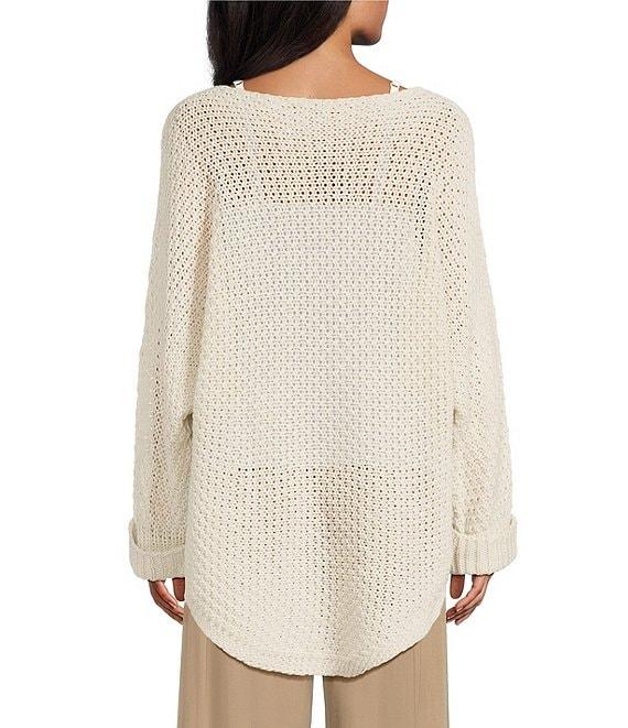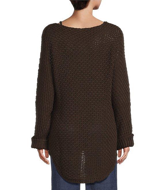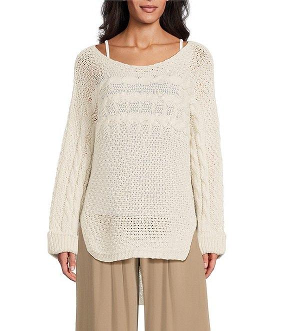 M Made in Italy Scoop Neck Long Sleeve Hi-Low Hem Cable Knit Sweater