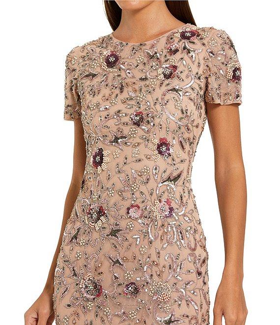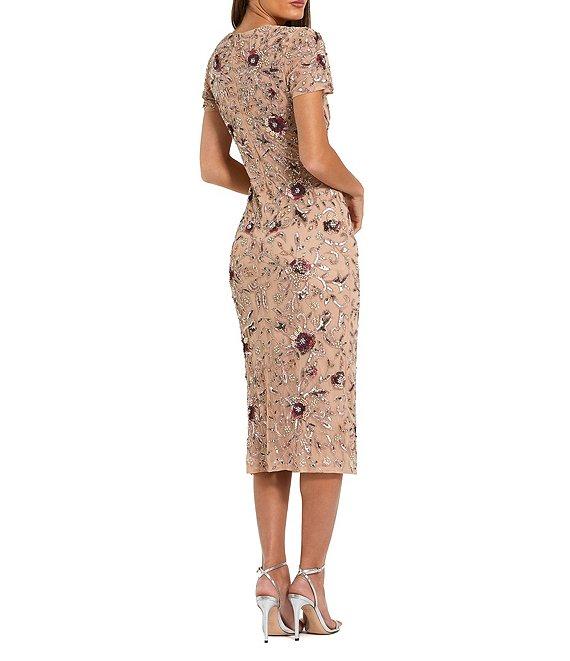 Mac Duggal Floral Embellished Mesh Midi Dress
