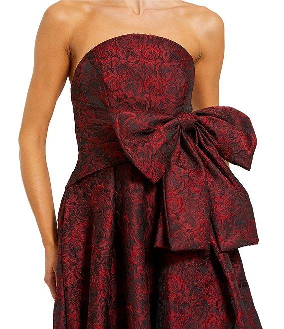 Mac Duggal Floral Jacquard Strapless With Bow A-Line Gown