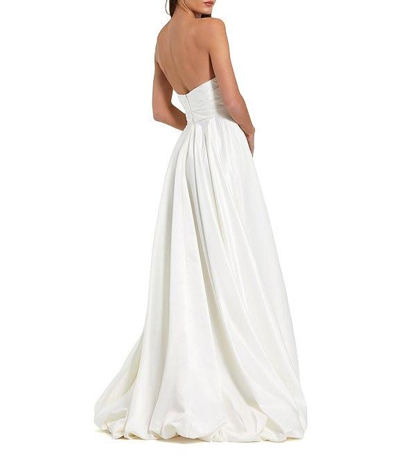Mac Duggal Petite Size Strapless Pleated Bodice Hi Lo Bubble Hem A-Line Gown