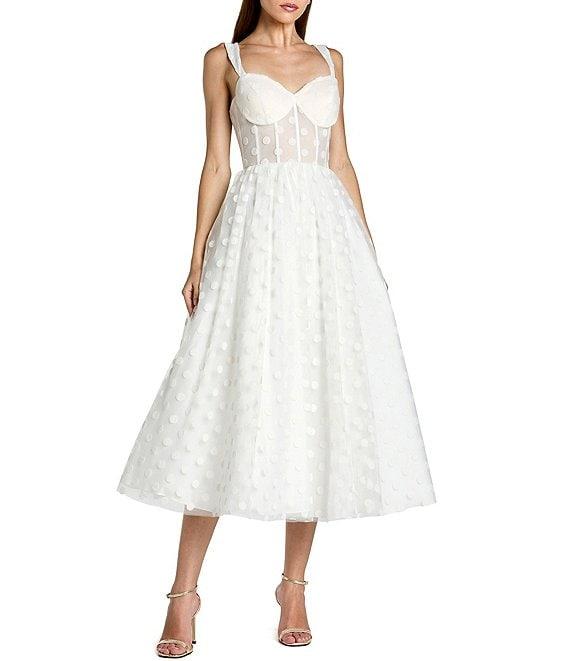 Mac Duggal Polka Dot Net Bustier Sweetheart Neckline A-Line Midi Dress