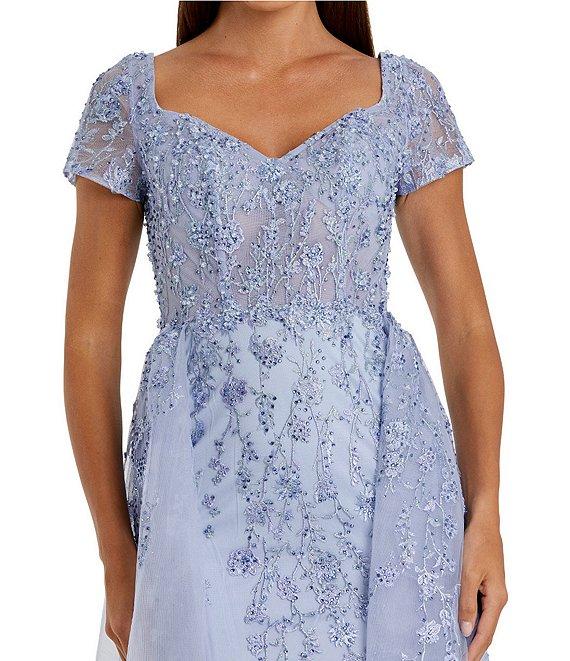 Mac Duggal Short Sleeve Beaded Embroidered Overskirt Gown