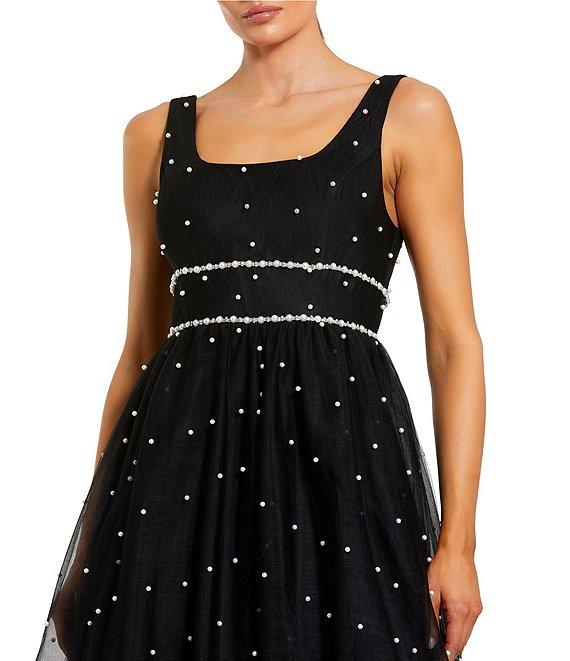 Mac Duggal Square Neck Pearl Trim A Line Gown
