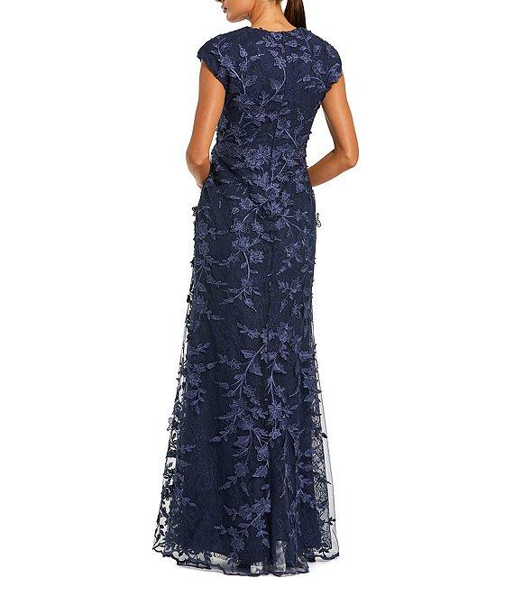 Mac Duggal V Neck Embroidered Mesh A Line Gown