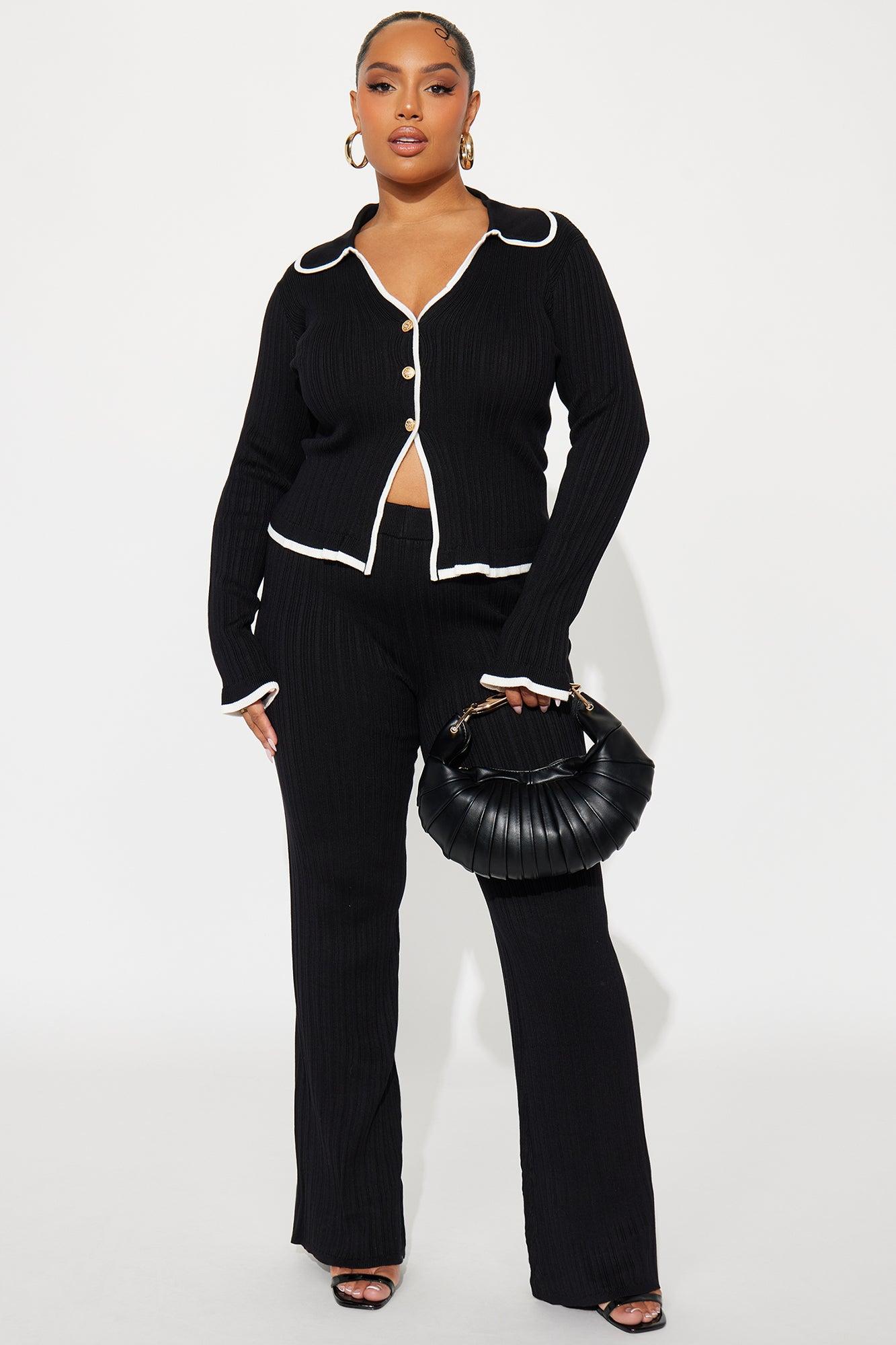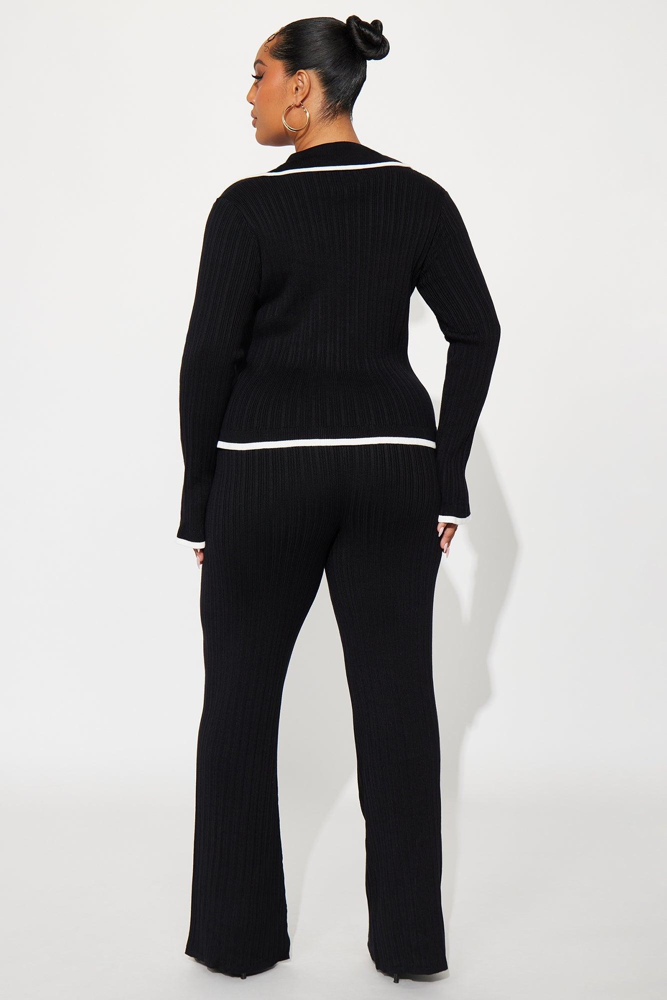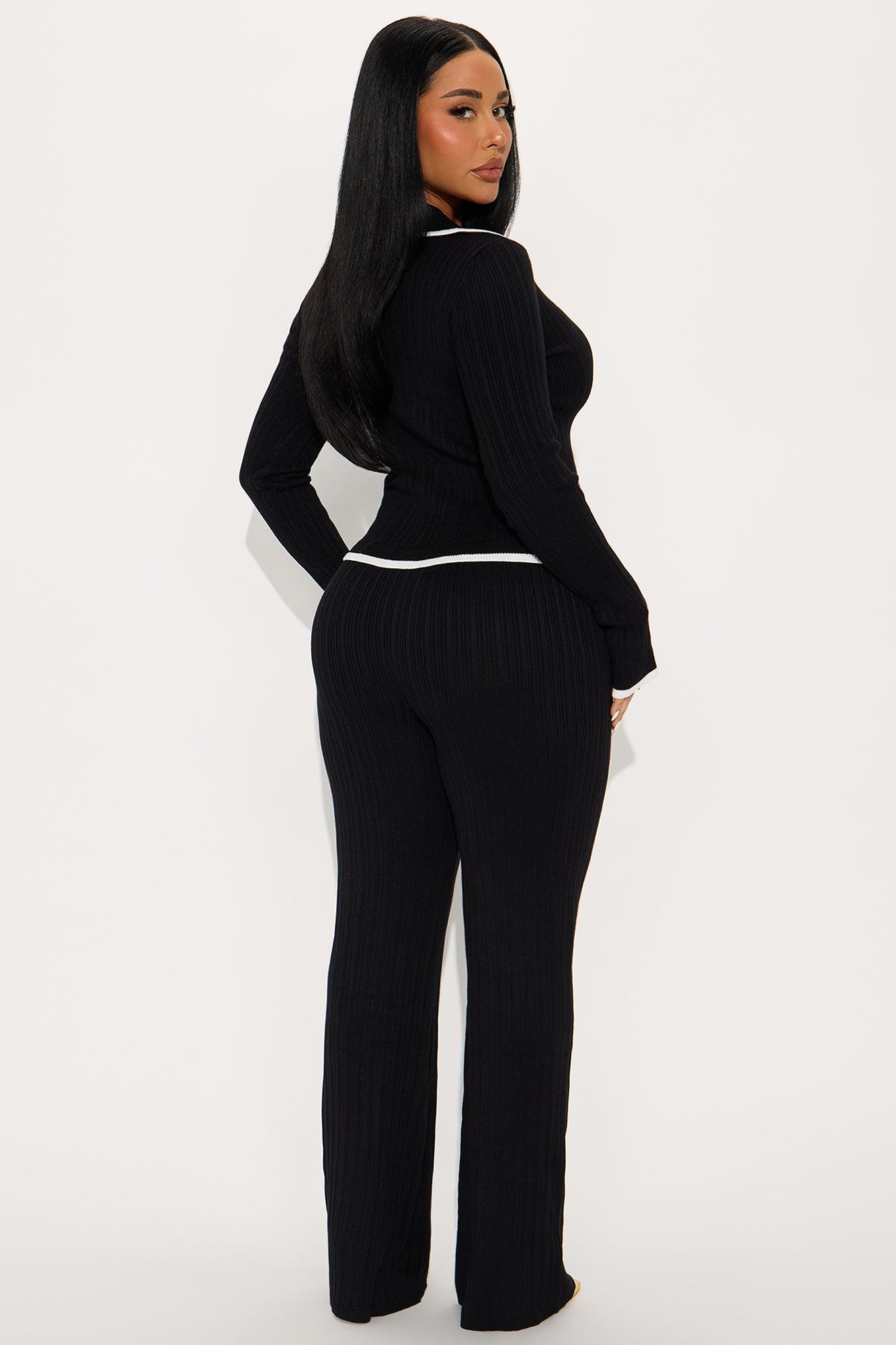 Macy Sweater Knit Flare Pant Set - Black Female