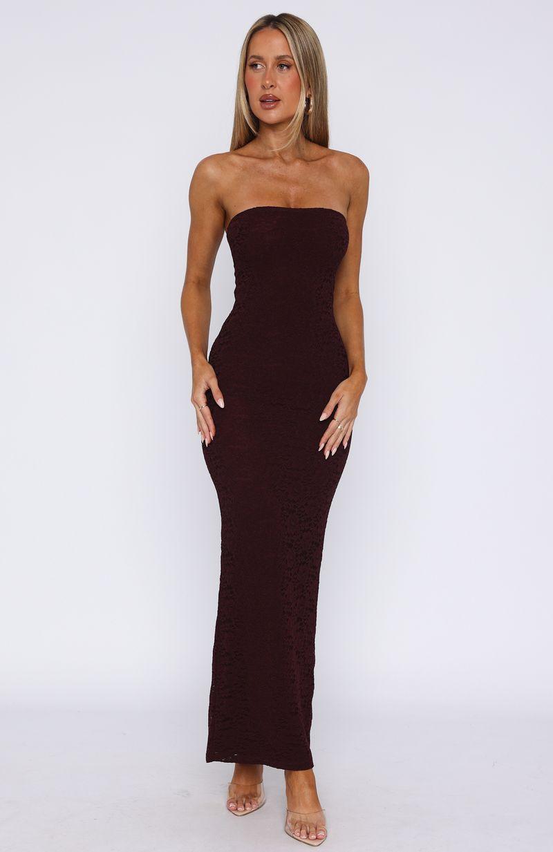 Fall madly in love with the Mad Love Strapless Maxi Dress in Burgundy! Features strapless neckline with grip tape, figure hugging design, lined, back leg split for ease of walkability and invisible zipper with hook and eye closure centre back. Complete the look with clear heels and simplistic jewellery for a sexy date night fit! 90% Nylon 10% Elastane Mik is 171cm & wears a S Em is 170cm & wears an XS