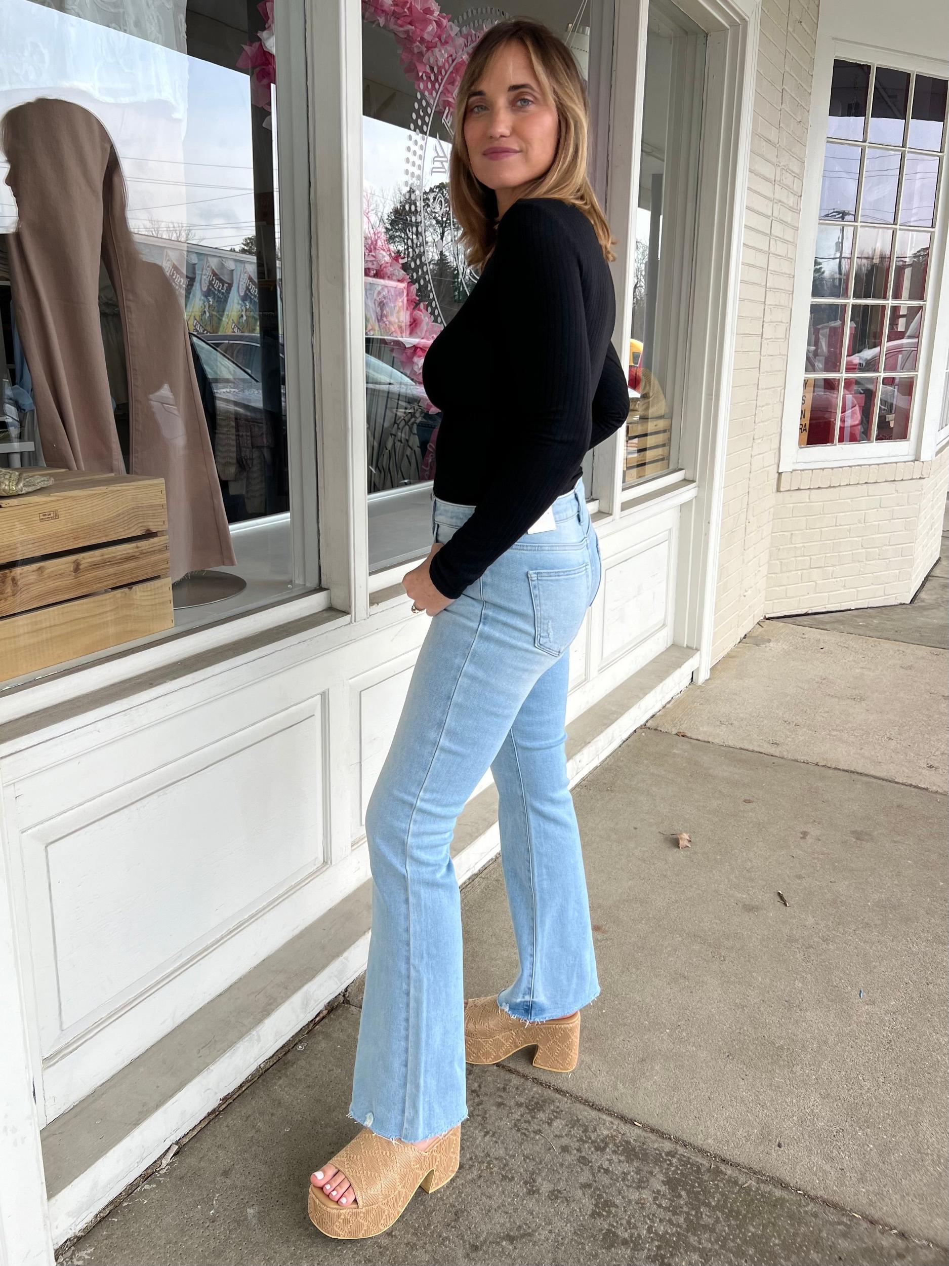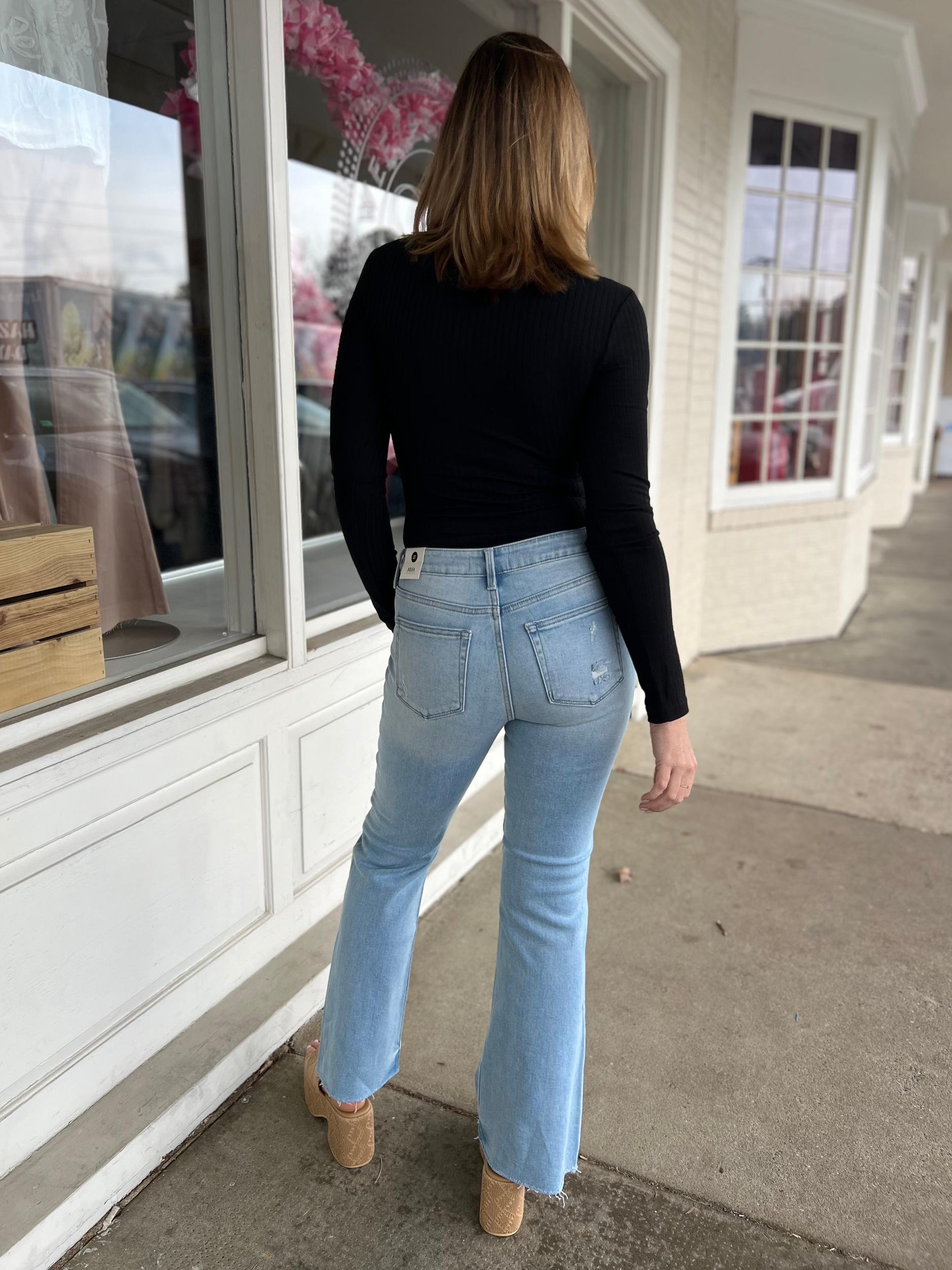 Get ready to show off those ankles with our Madison Flare Jeans! These ankle-length jeans feature a trendy flare cut hem and convenient front and back pockets. Perfect for effortlessly stylish looks.