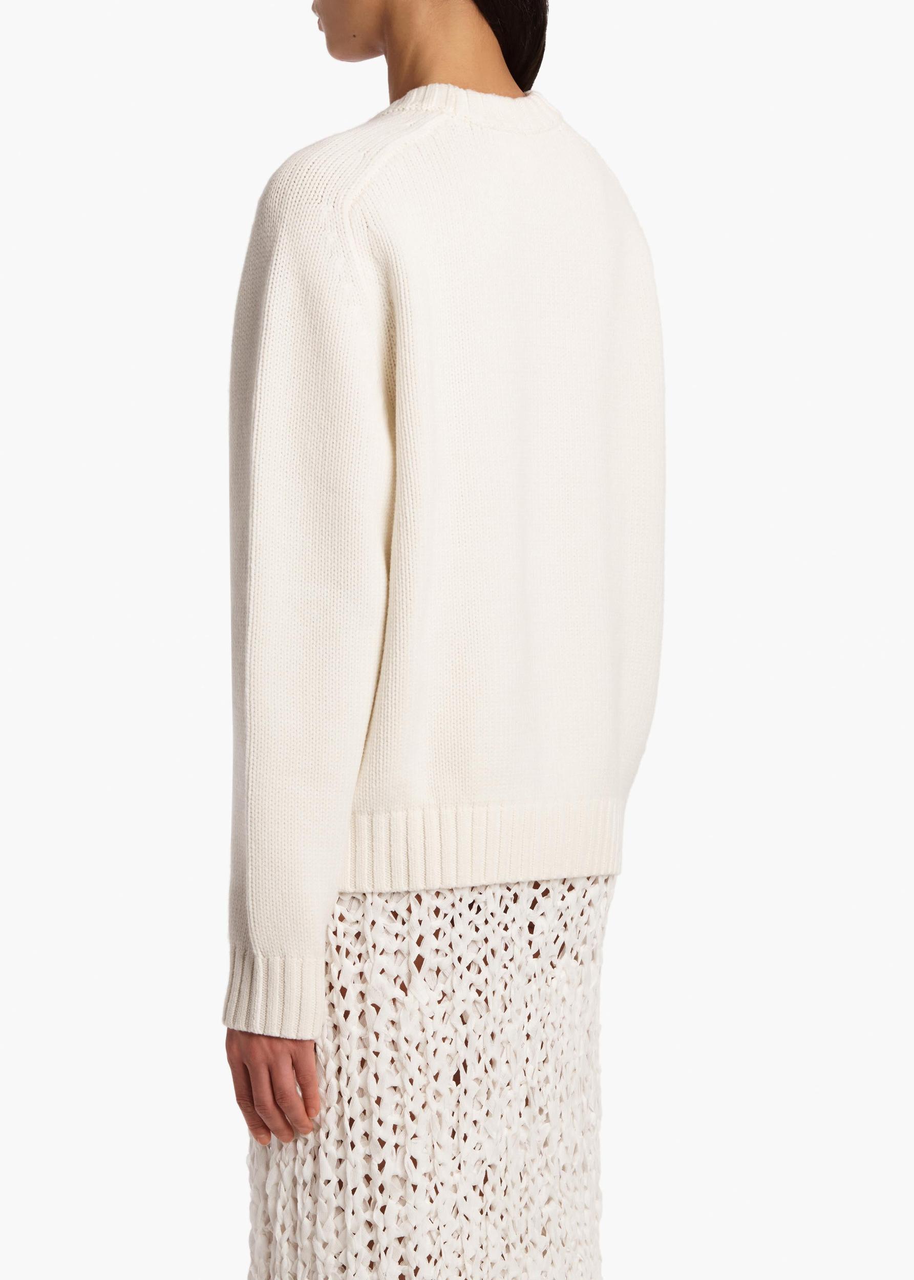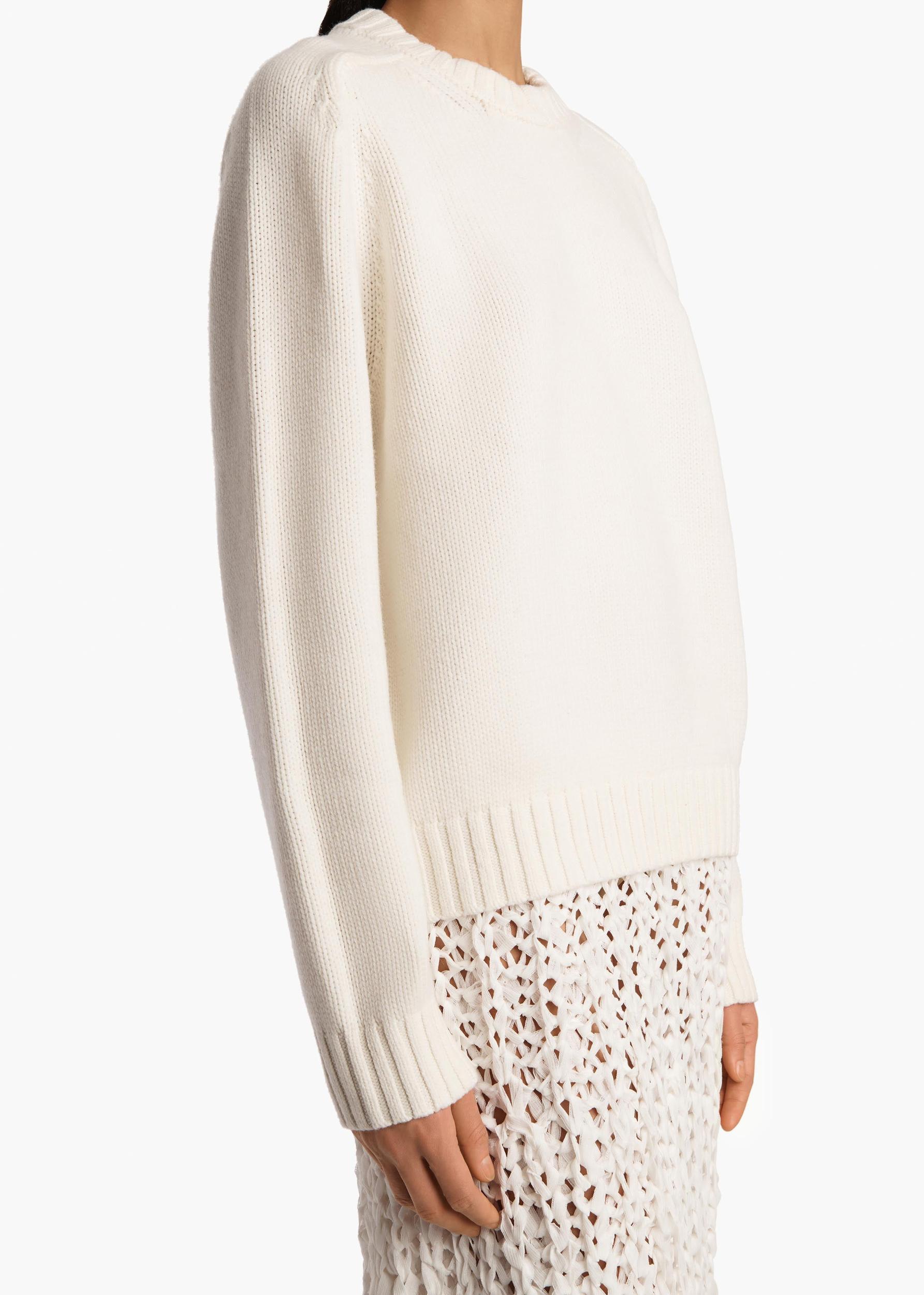 An enveloping cashmere pullover with extended sleeves. The relaxed silhouette is refined by ribbed trim at the crewneck, hem, and cuffs.