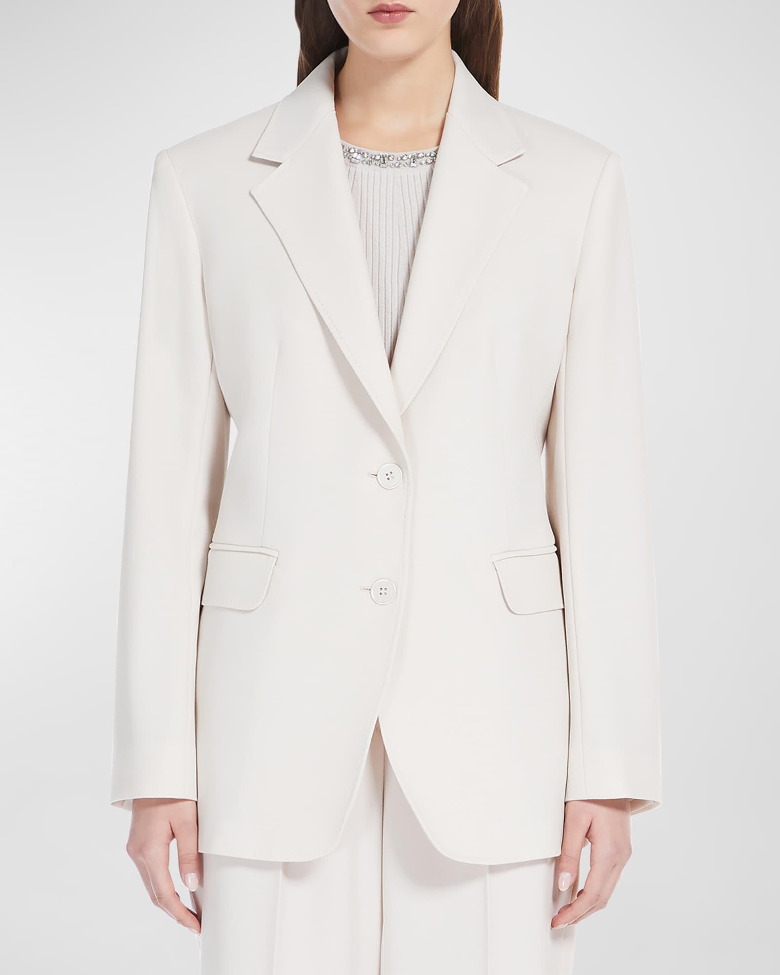 Max Mara Studio "Magma" coat with pick stitch detailing Notched lapel; single-breasted front Long sleeves; button cuffs Front flap pockets Center back vent Relaxed fit Virgin wool/acetate/polyester Professional cleaning recommended Imported Model is 5'10"/177cm.