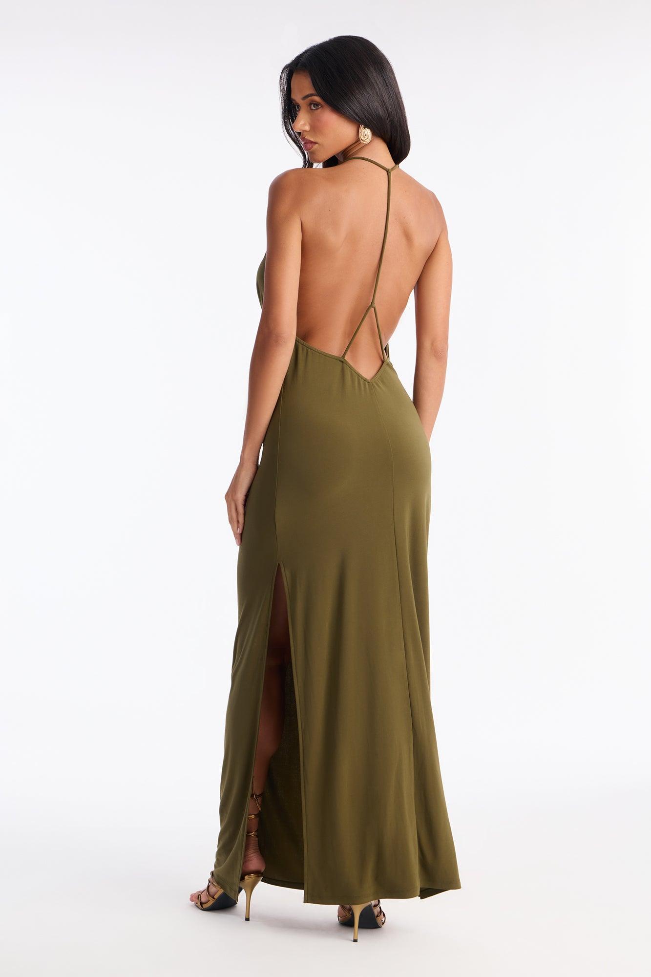 Main Character Moment Studded Trim Maxi Dress - Olive Female