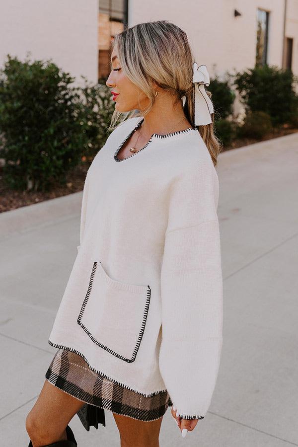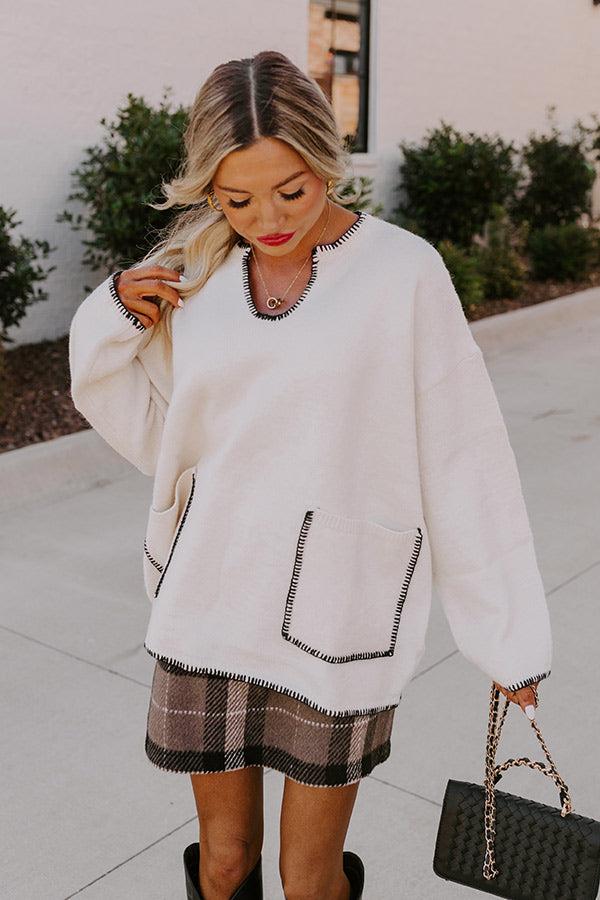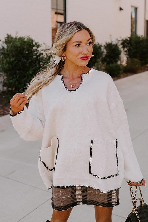 - Start your day off on the charming side of style with this trendy sweater! With its sweet embroidered trim and stylish design, it's ideal for everything from cool morning coffee runs to cozy gatherings. No matter where the day takes you this cozy piece will keep you looking cute! - Unlined wool-blend material - Embroidered accent trim - A v-cut neckline - Long sleeves - Functional low pockets - A relaxed silhouette that ends in a straight hemline