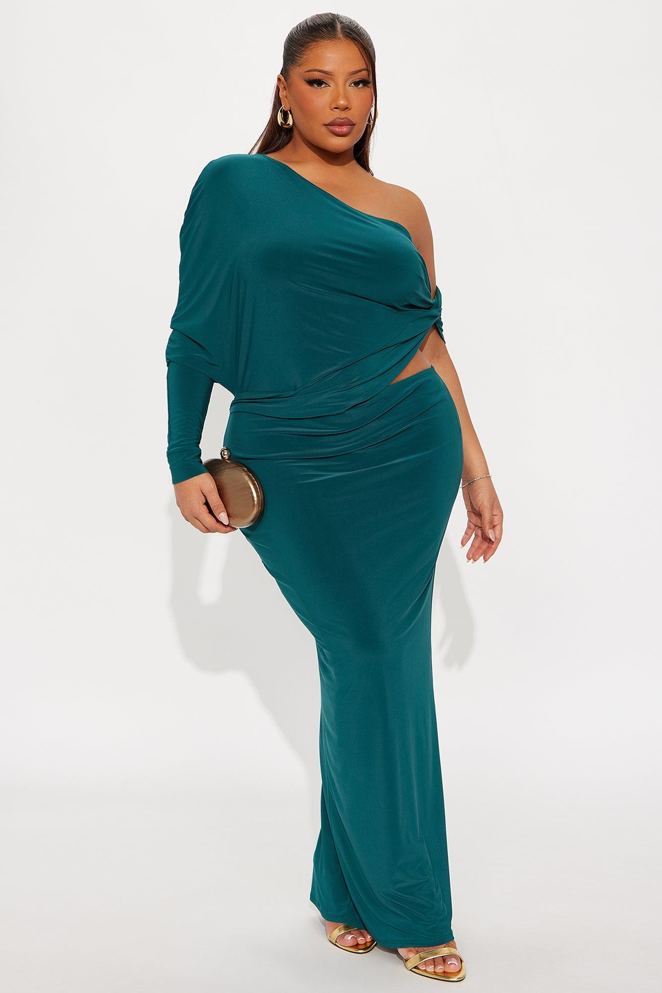 Major Crush Off Shoulder Maxi Dress - Hunter