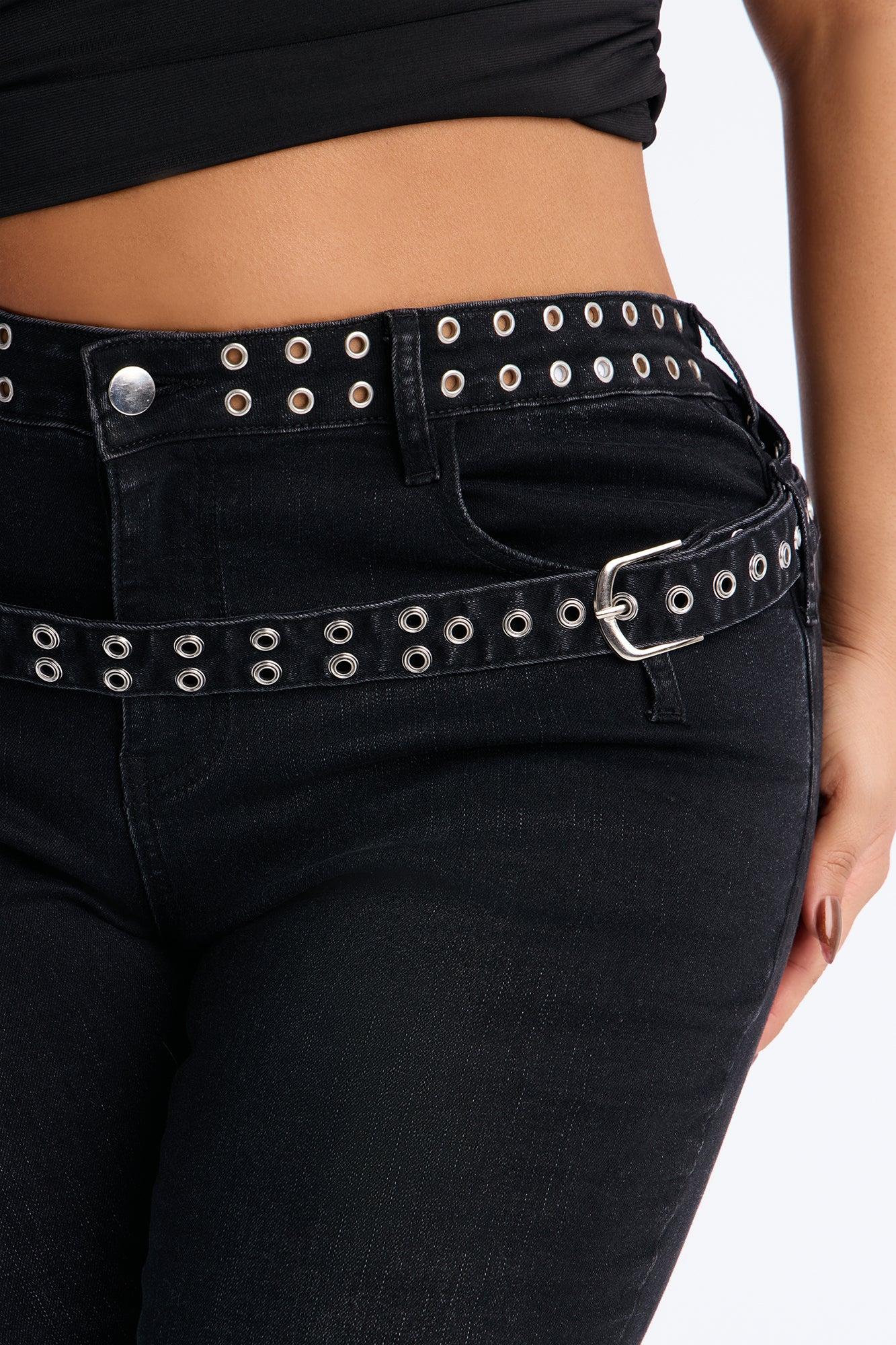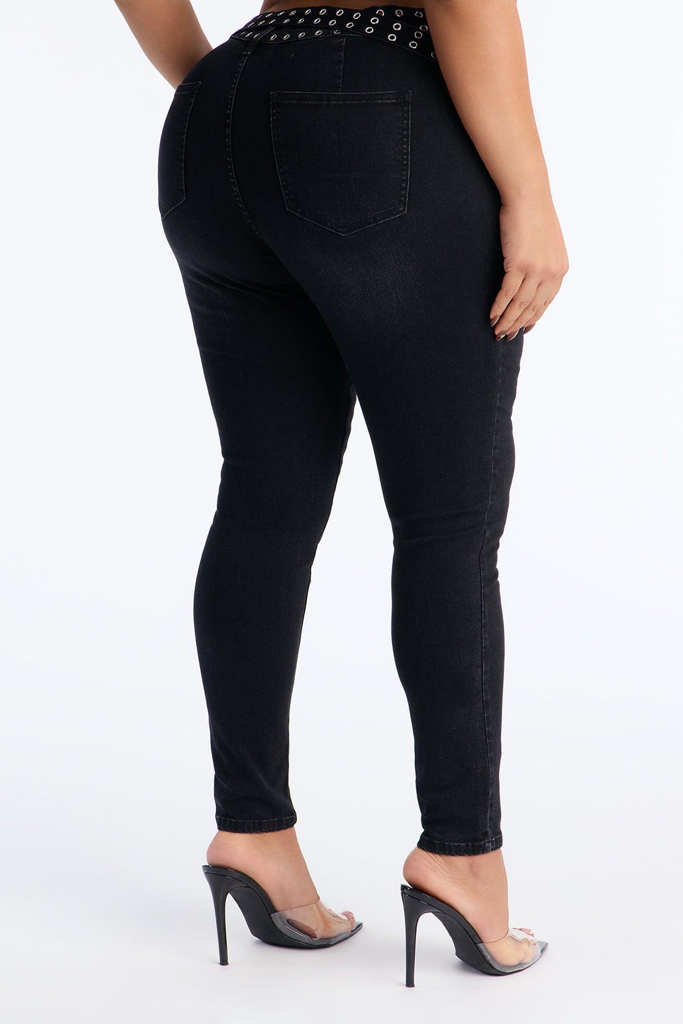 Available In Black Wash. Skinny Jean 5 Pocket Belted 8.5" Low Rise 28.5" Inseam Medium Stretch Disclaimer: Due To The Specialized Wash, Each Garment Is Unique. 70% Cotton 28% Polyester 2% Spandex Imported California Proposition 65WARNING: Cancer and Reproductive Harm - www.P65Warnings.ca.gov.