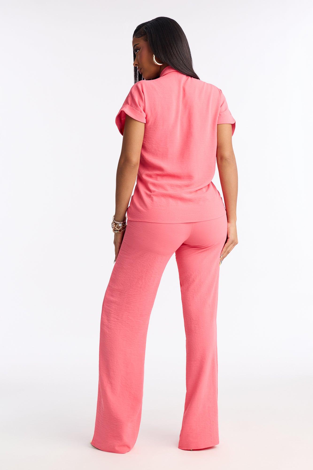 Makela Tie Front Wide Leg Pant Set - Pink Female