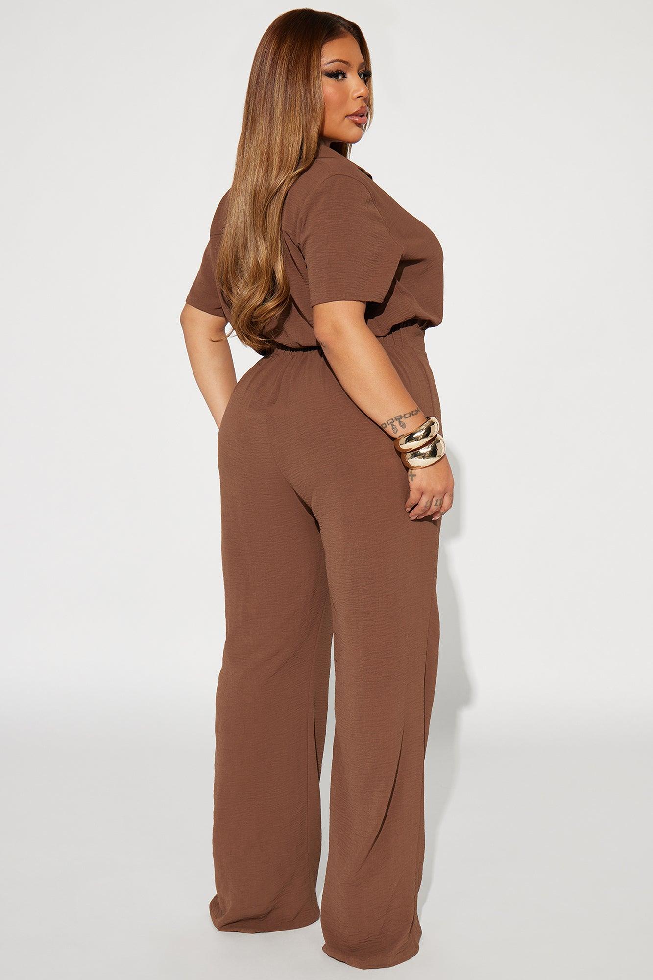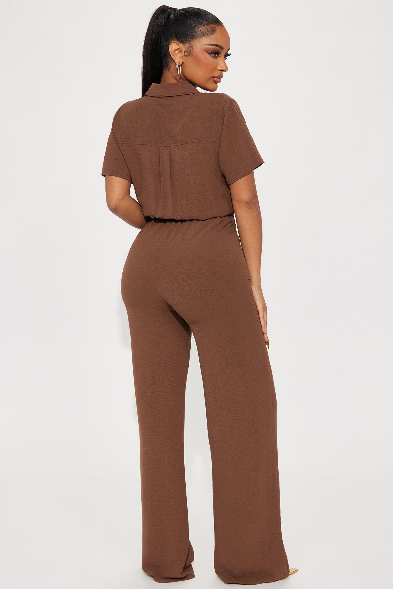 Cozy Era Short Sleeve Jumpsuit - Chocolate