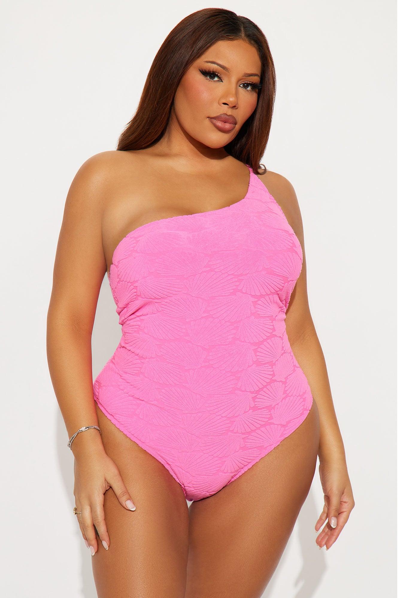 Available In Hot Pink. 1 Piece Swimsuit Terry Cloth Shell Pattern One Shoulder Adjustable Strap Removable Cups Cheeky Full Stretch Final Sale Disclaimer: Pattern Placement Will Vary Shell: 96% Polyester 4% Spandex Lining: 92% Polyester 8% Spandex Imported