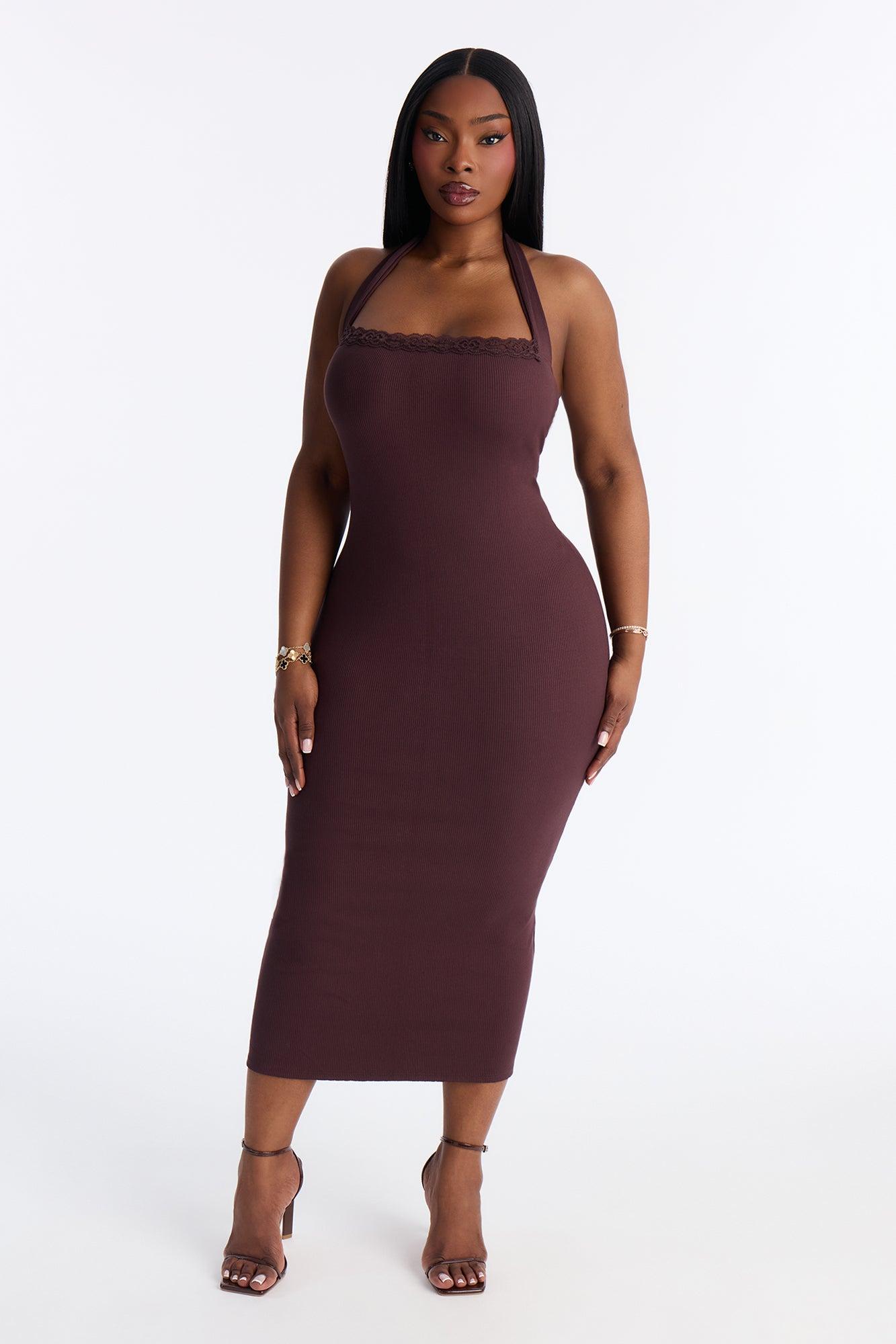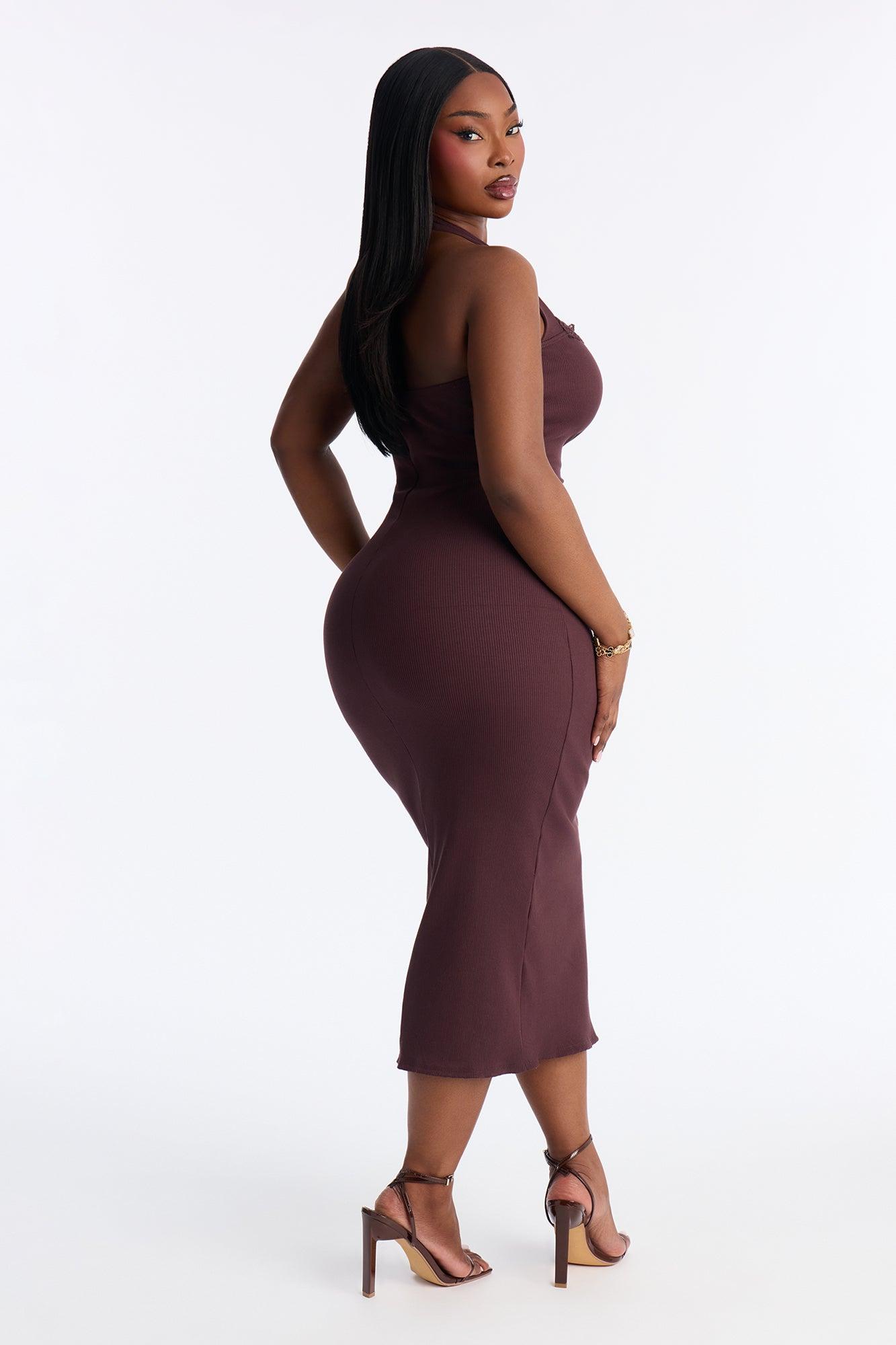 Mallory Halter Snatched Midi Dress - Chocolate Female