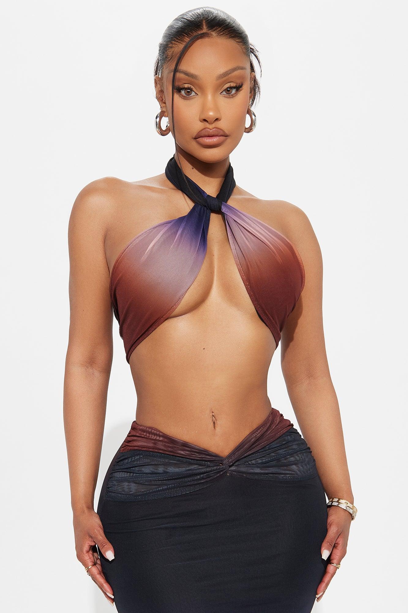 Malora Ombre Mesh halter Maxi Skirt Set - Rust/combo Female