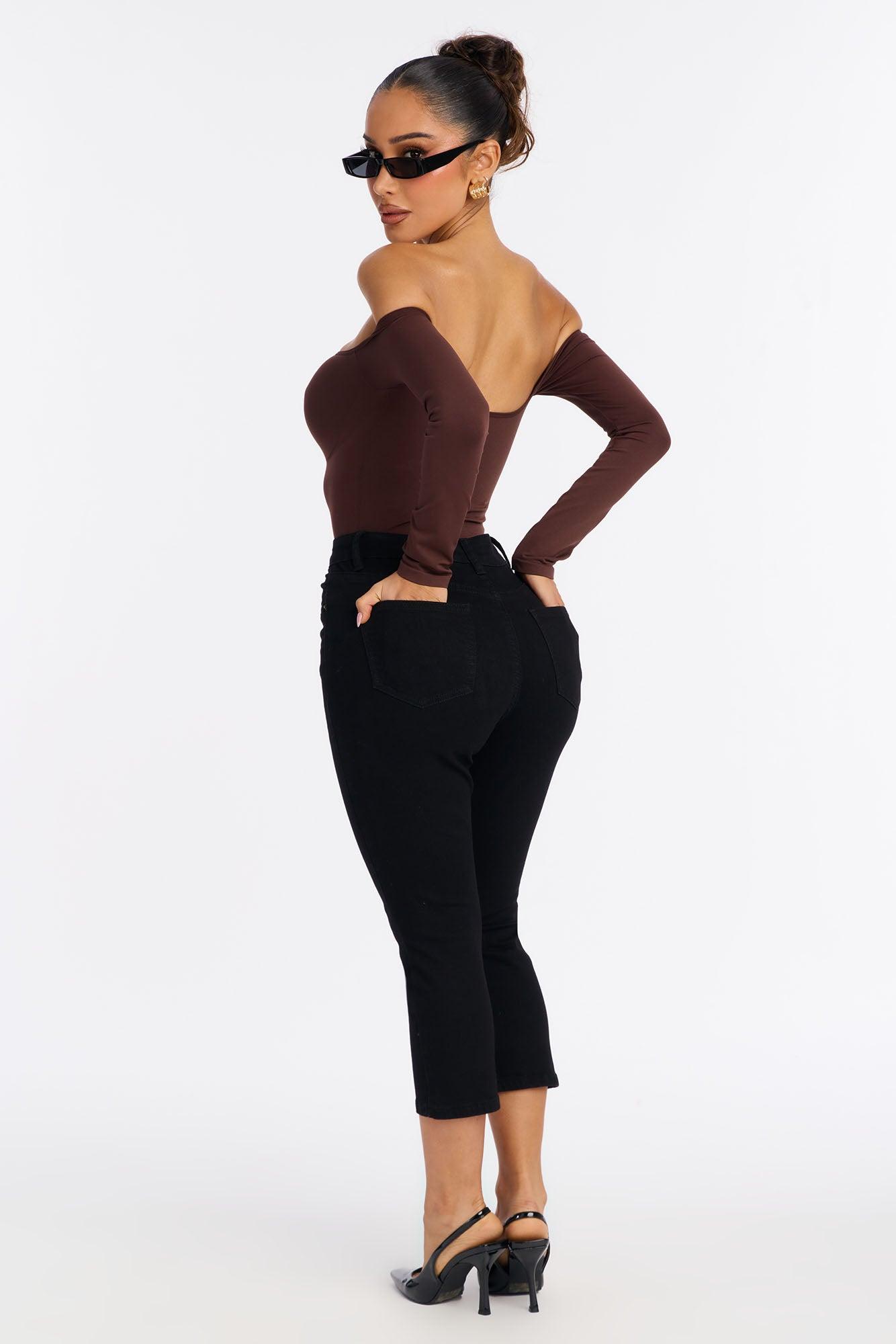 Available In Black And Dark Wash. Denim Skinny Capri 5 Pocket 11" Rise 21" Inseam Medium Stretch 68% Cotton 22% Polyester 9% Rayon 1% Elastane Imported California Proposition 65WARNING: Cancer and Reproductive Harm - www.P65Warnings.ca.gov.
